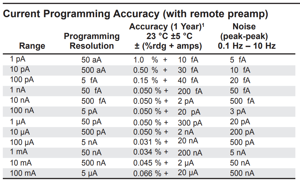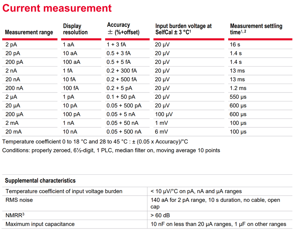 Similar issues are also present on the low current ranges below 10 nA as well, with incorrect readings.