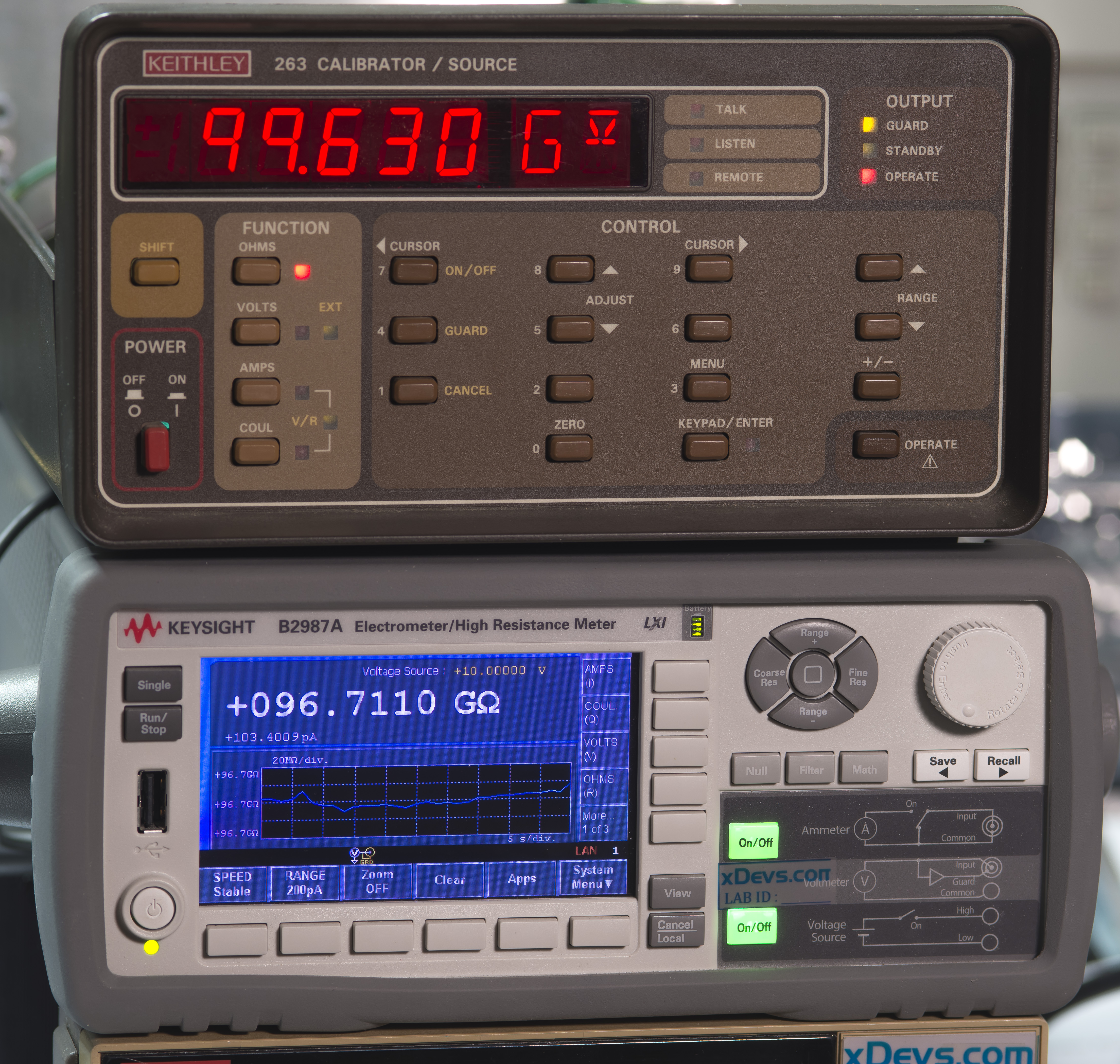 Sourcing resistances from 263 was showing errornous results for resistances 10 MΩ and higher. It was looking just a slightly smaller values for MΩ-ranges but the fault becomes obvious on 10 GΩ range which reads 6.27 GΩ instead of expected 9.9031 GΩ.