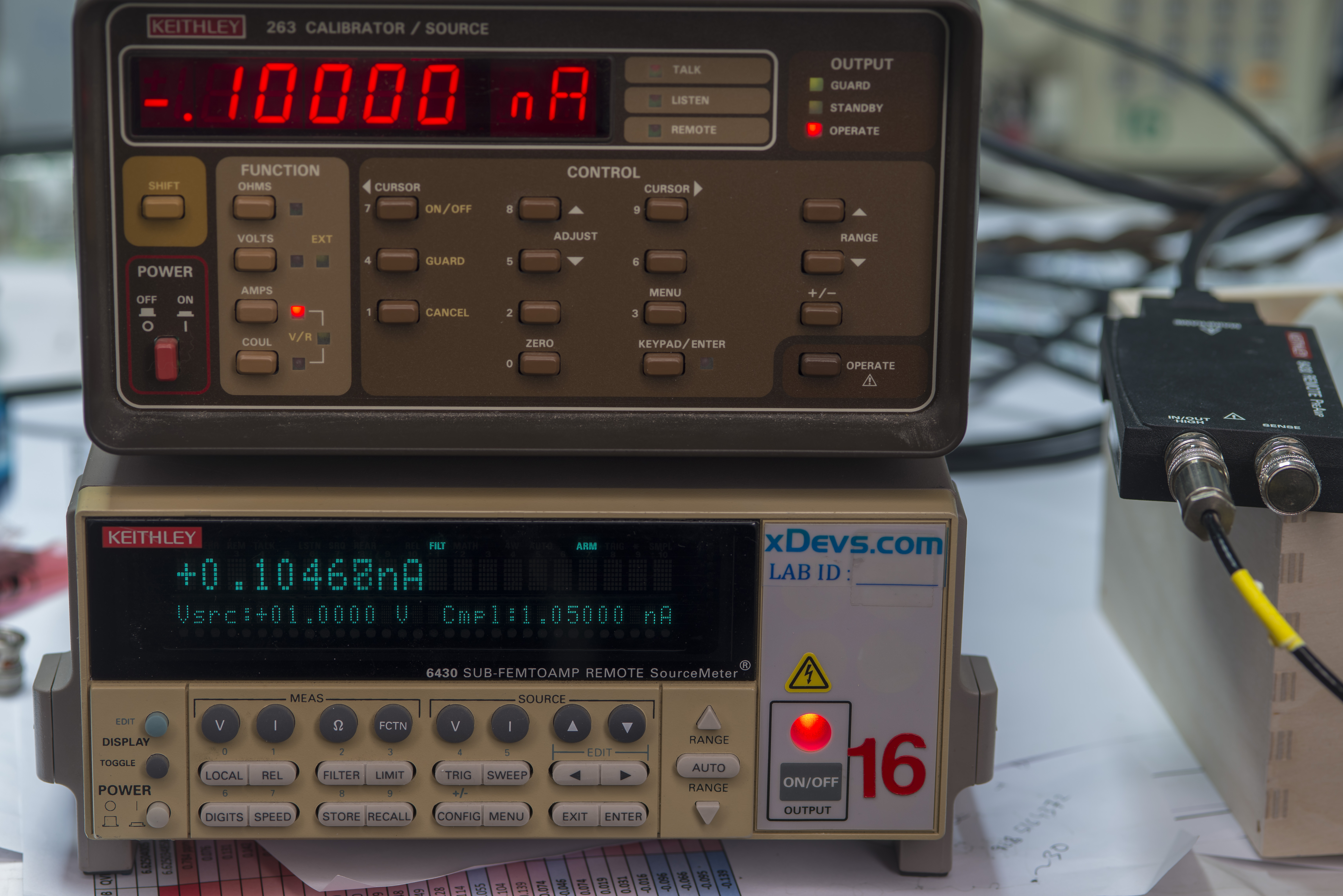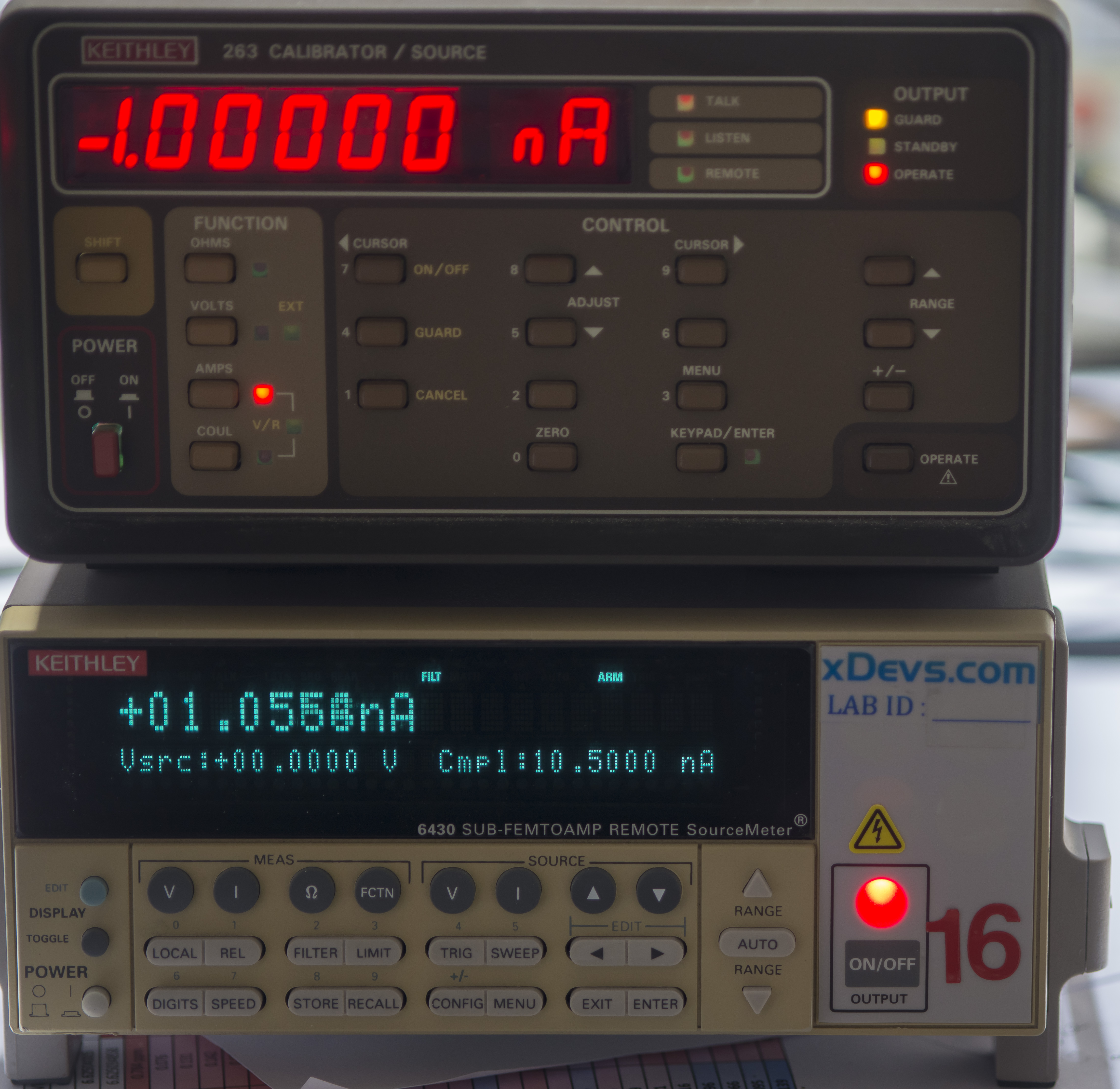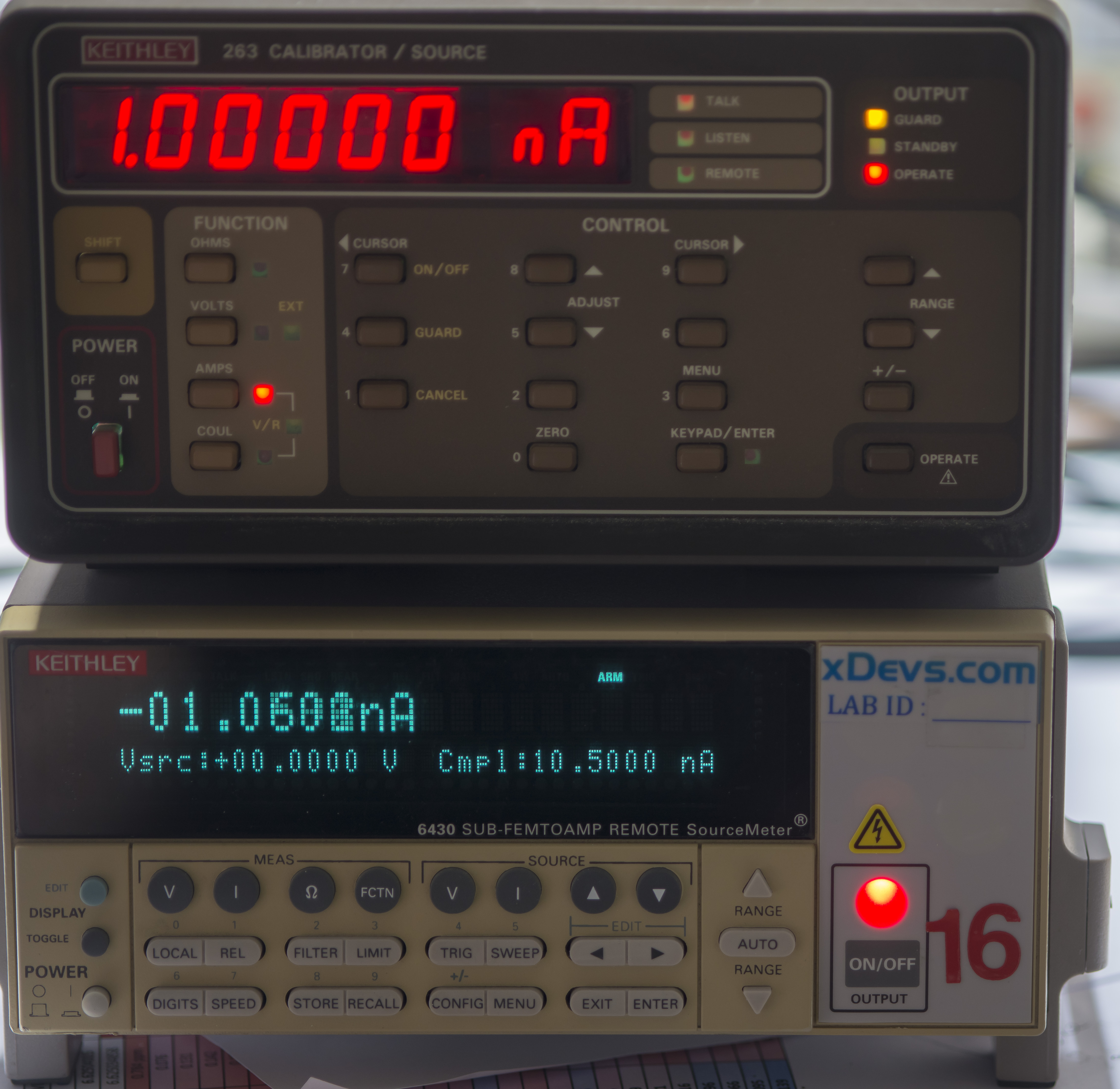 For test I’ve used Keithley 6430 with 1 nA measured current.