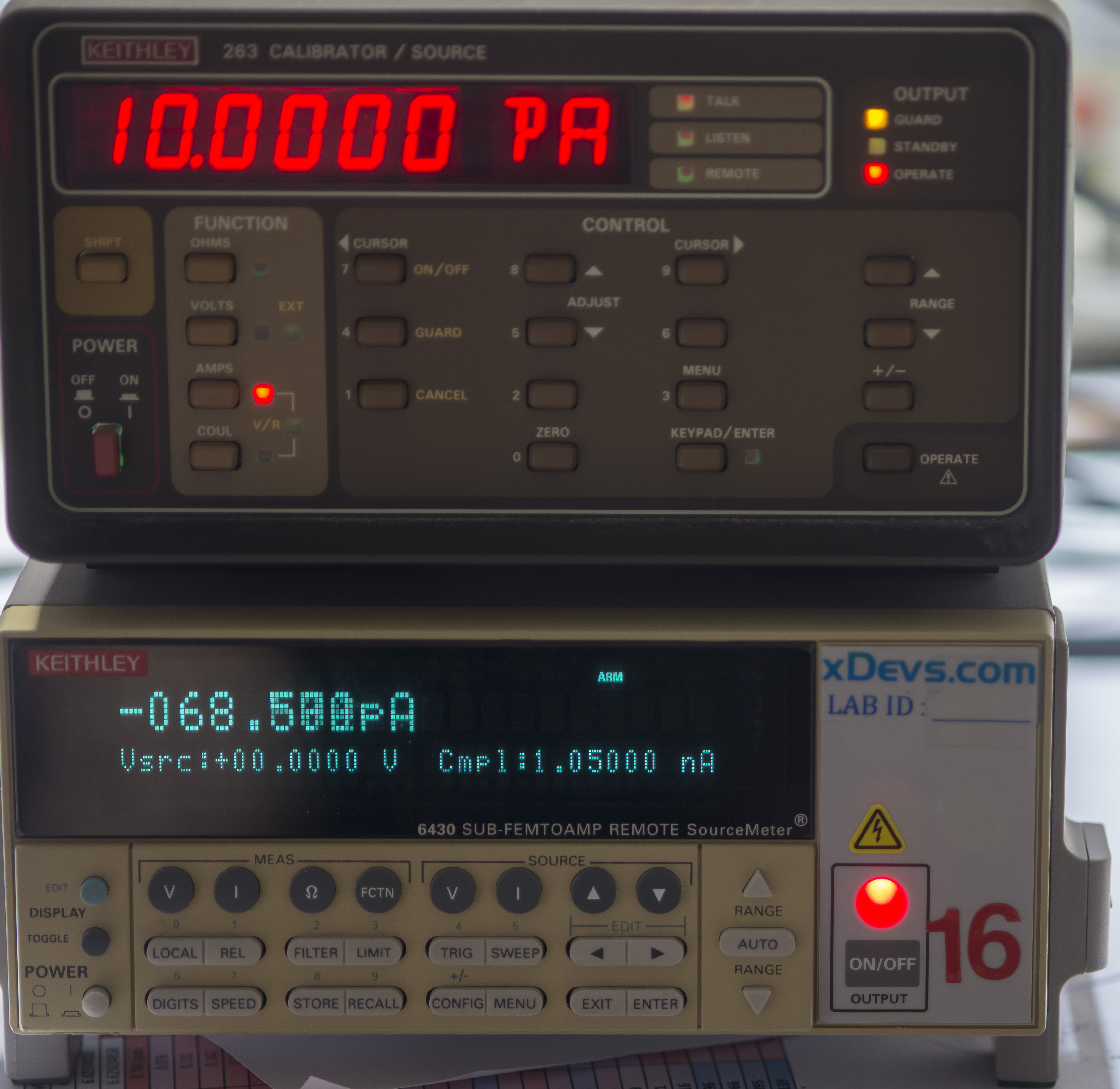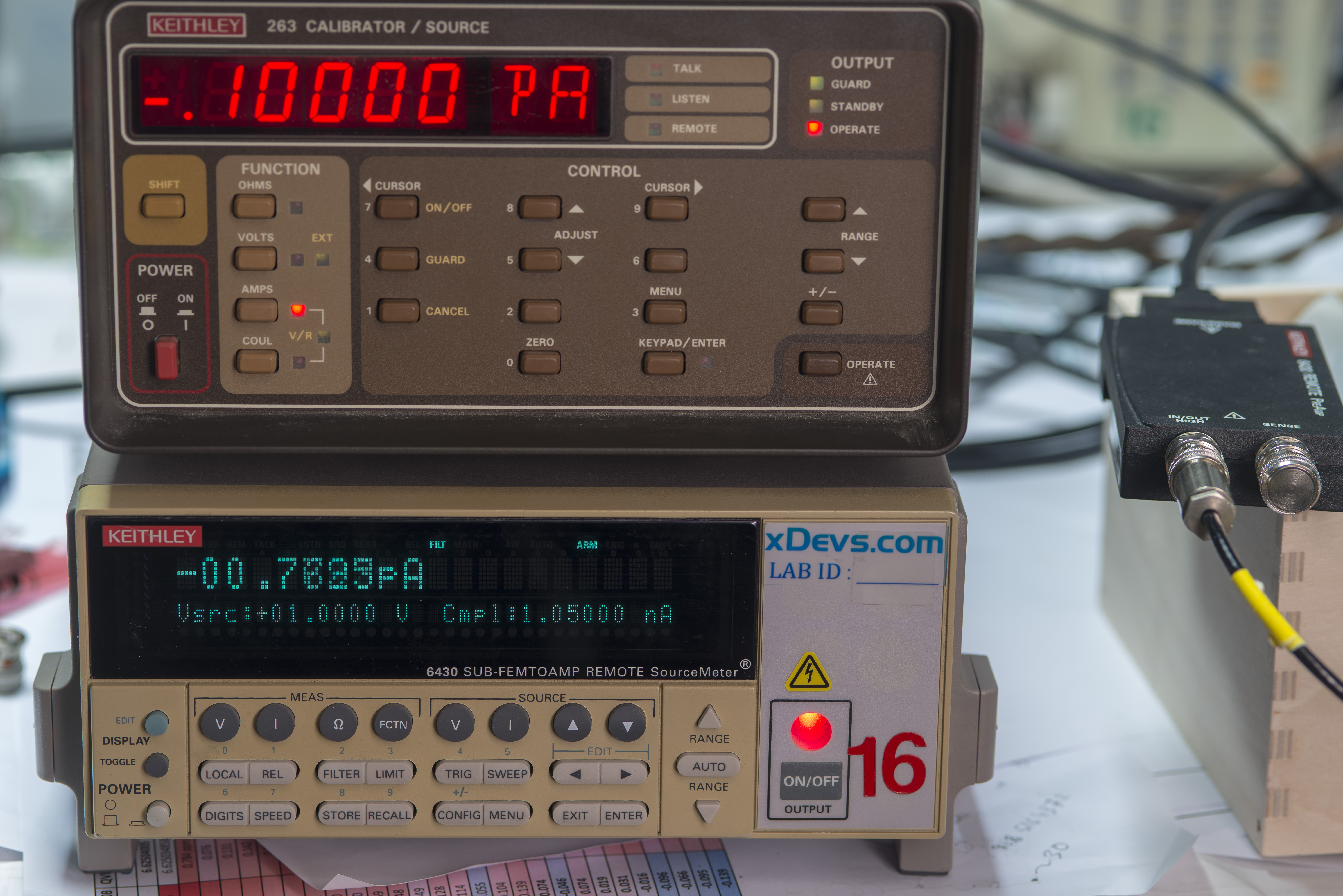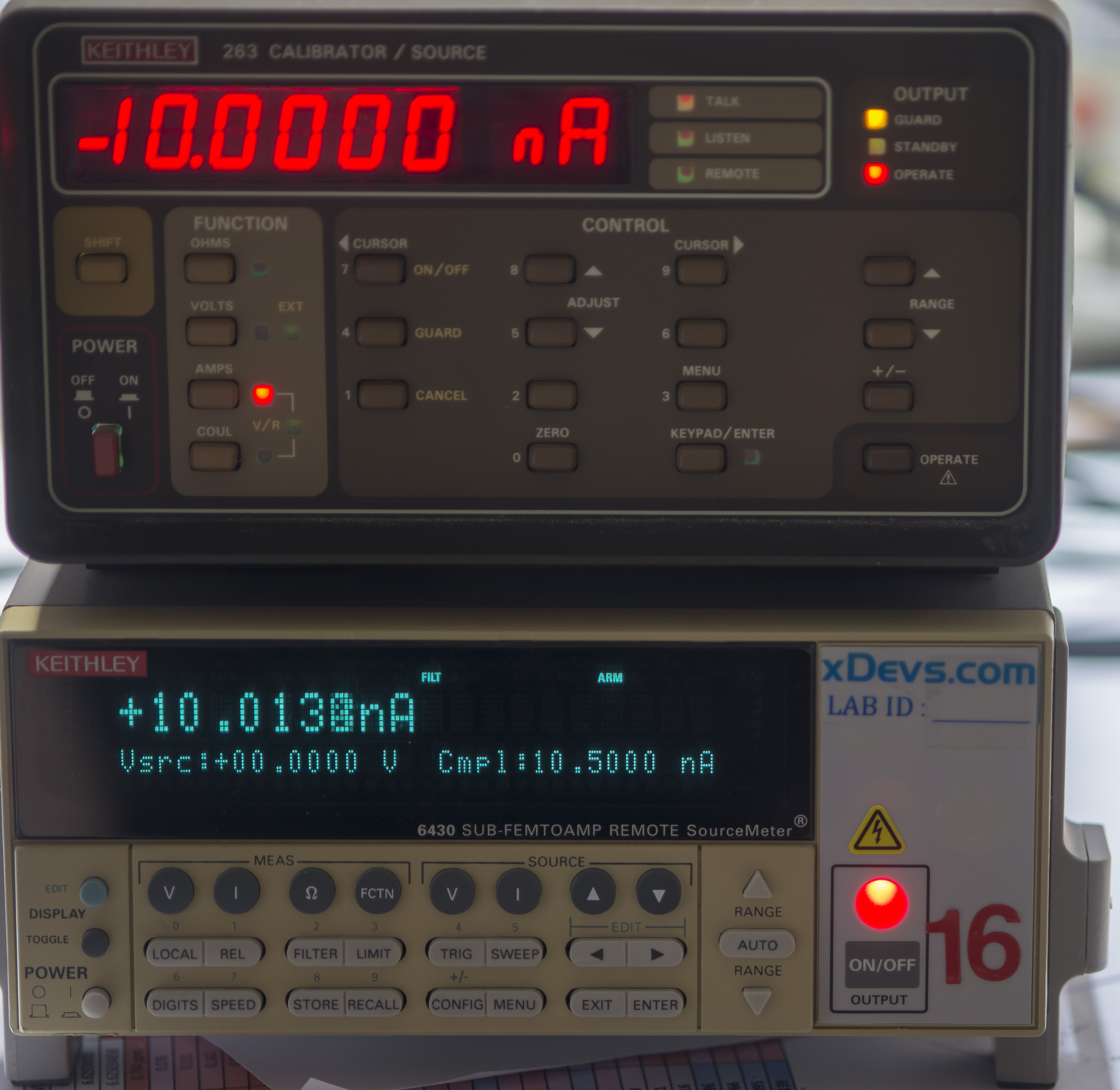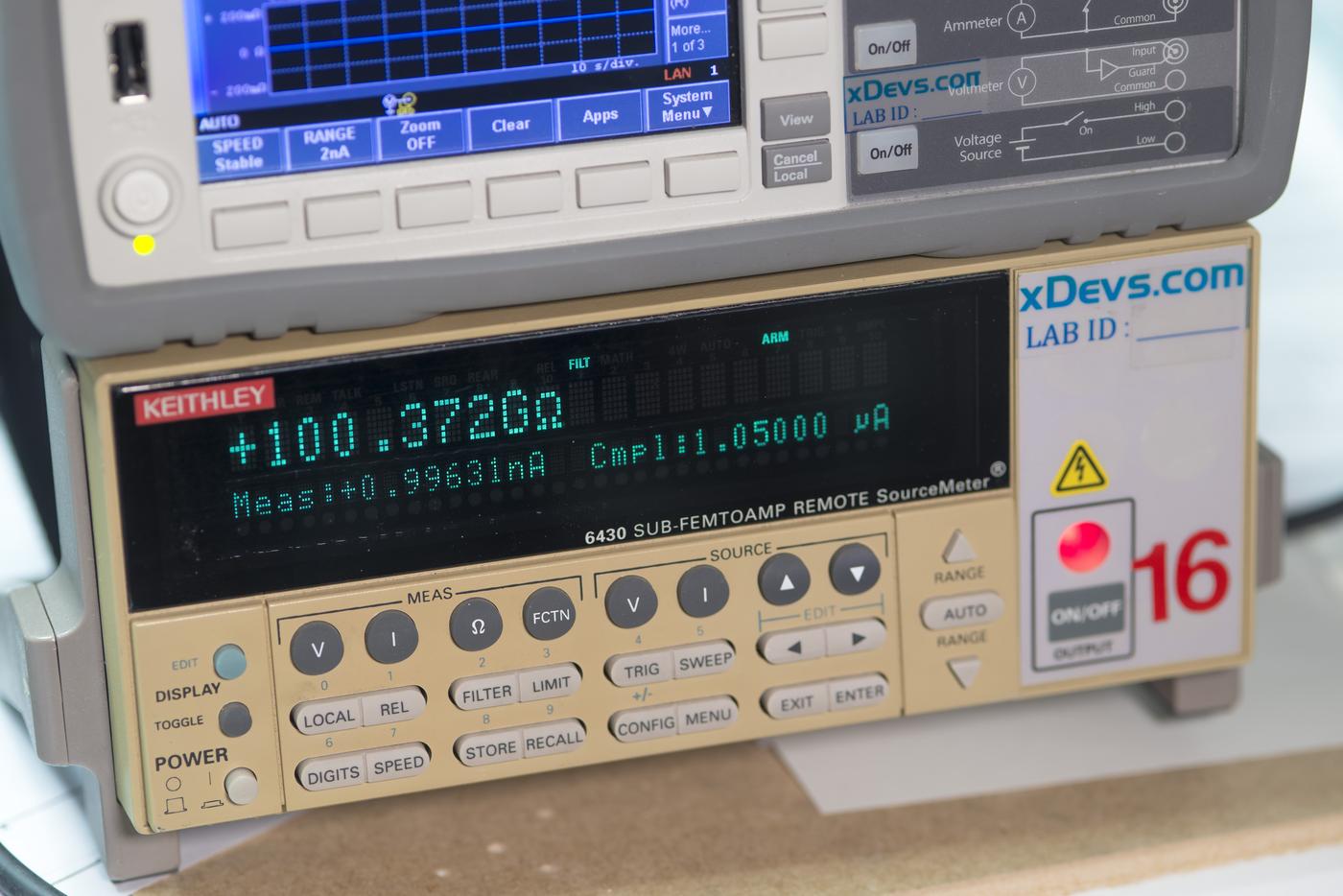 For test I’ve used Keithley 6430 with 1 nA measured current.