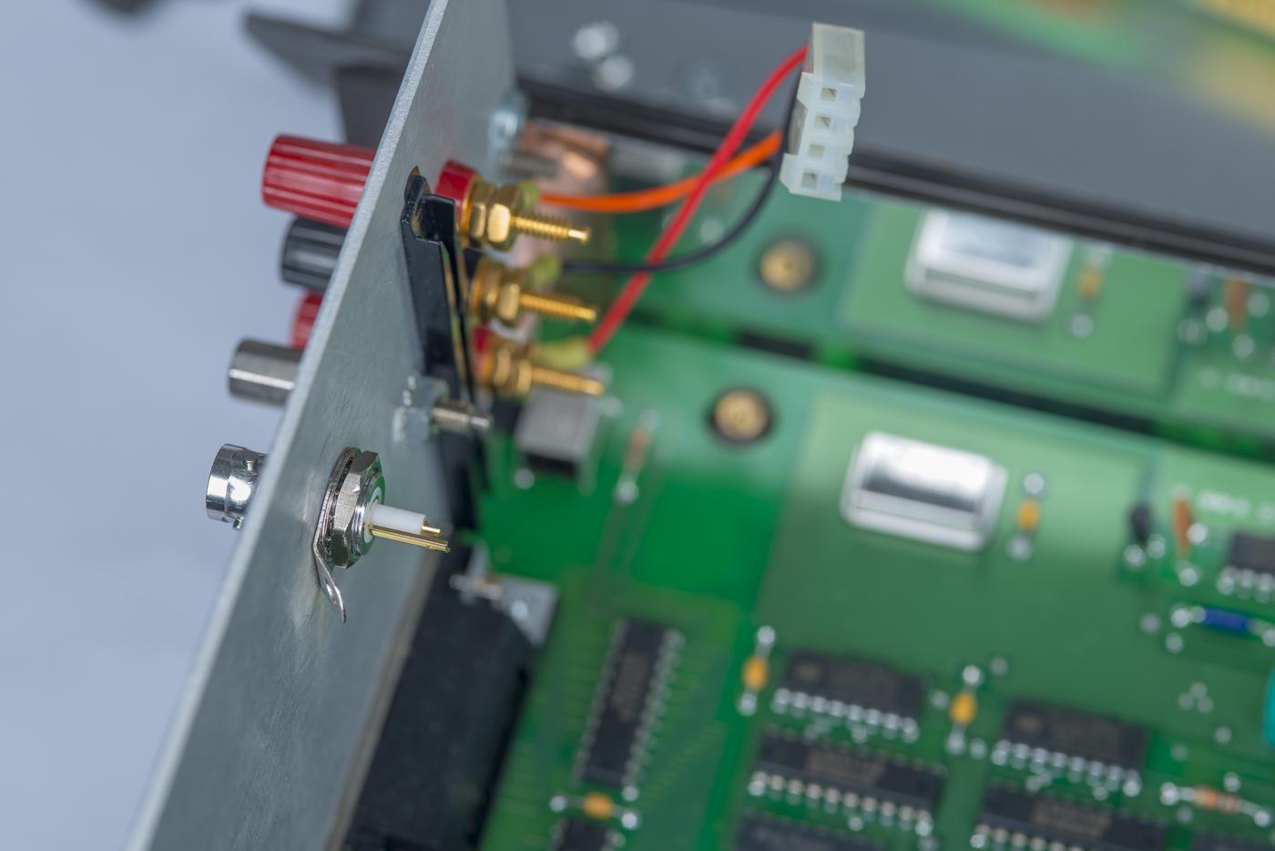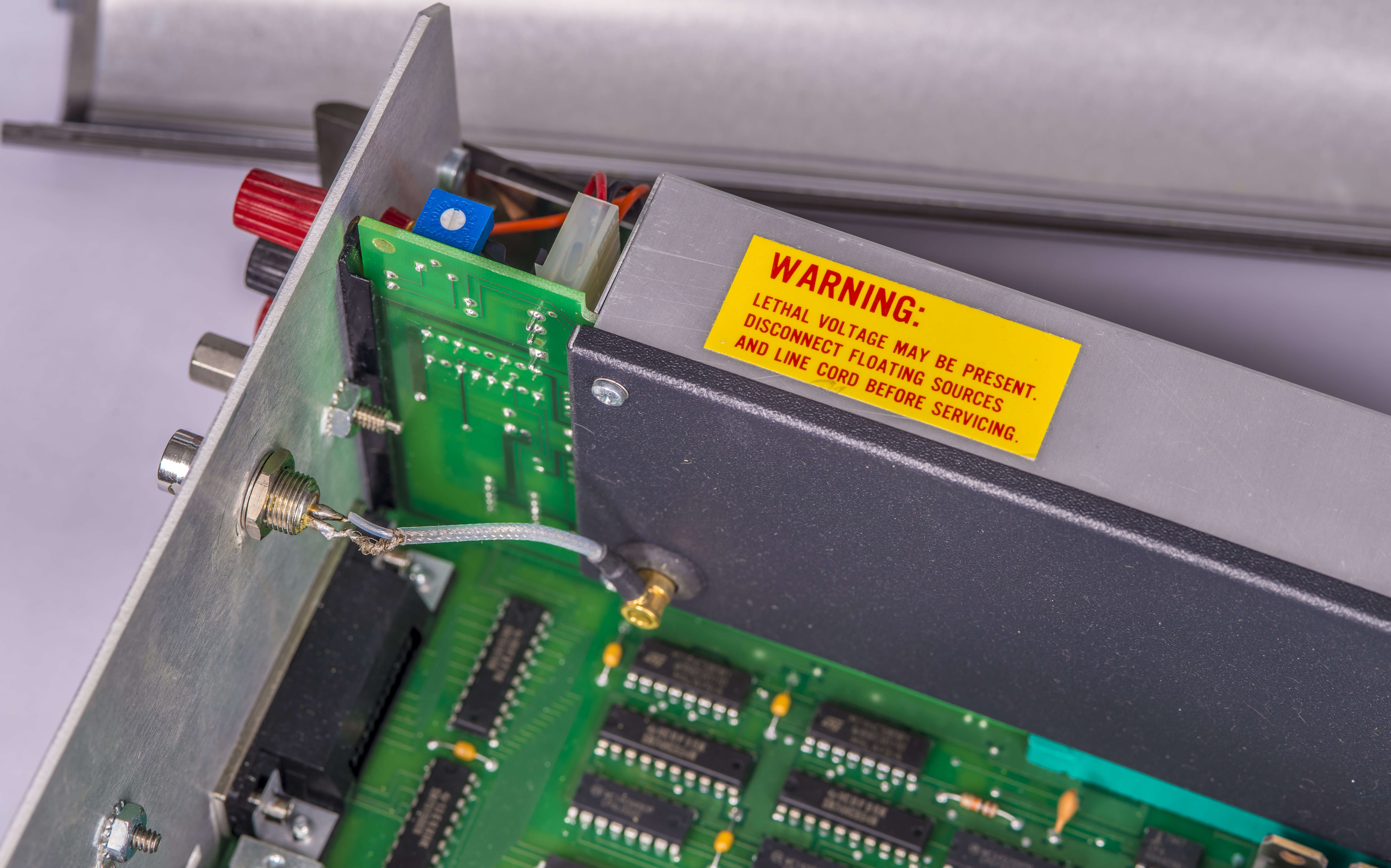 When powered up front interface lights up with bring large 5½-digit LED screen with additional indicators for GUARD, STANDBY/OPERATE indicator. Instrument takes about 8 W so it does not require active cooling or large went holes to get all the dust in.