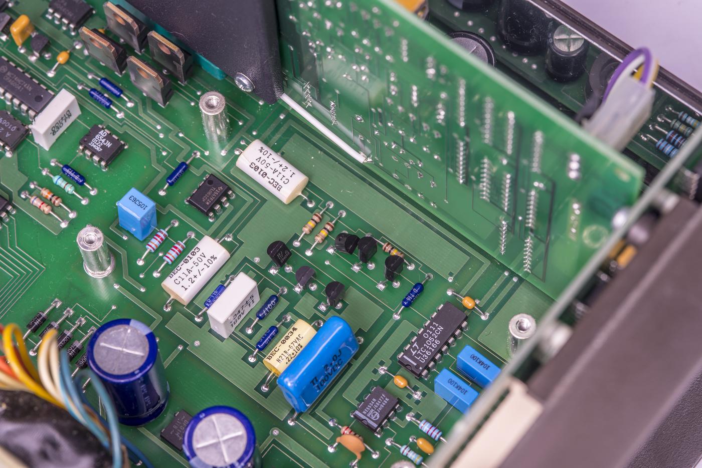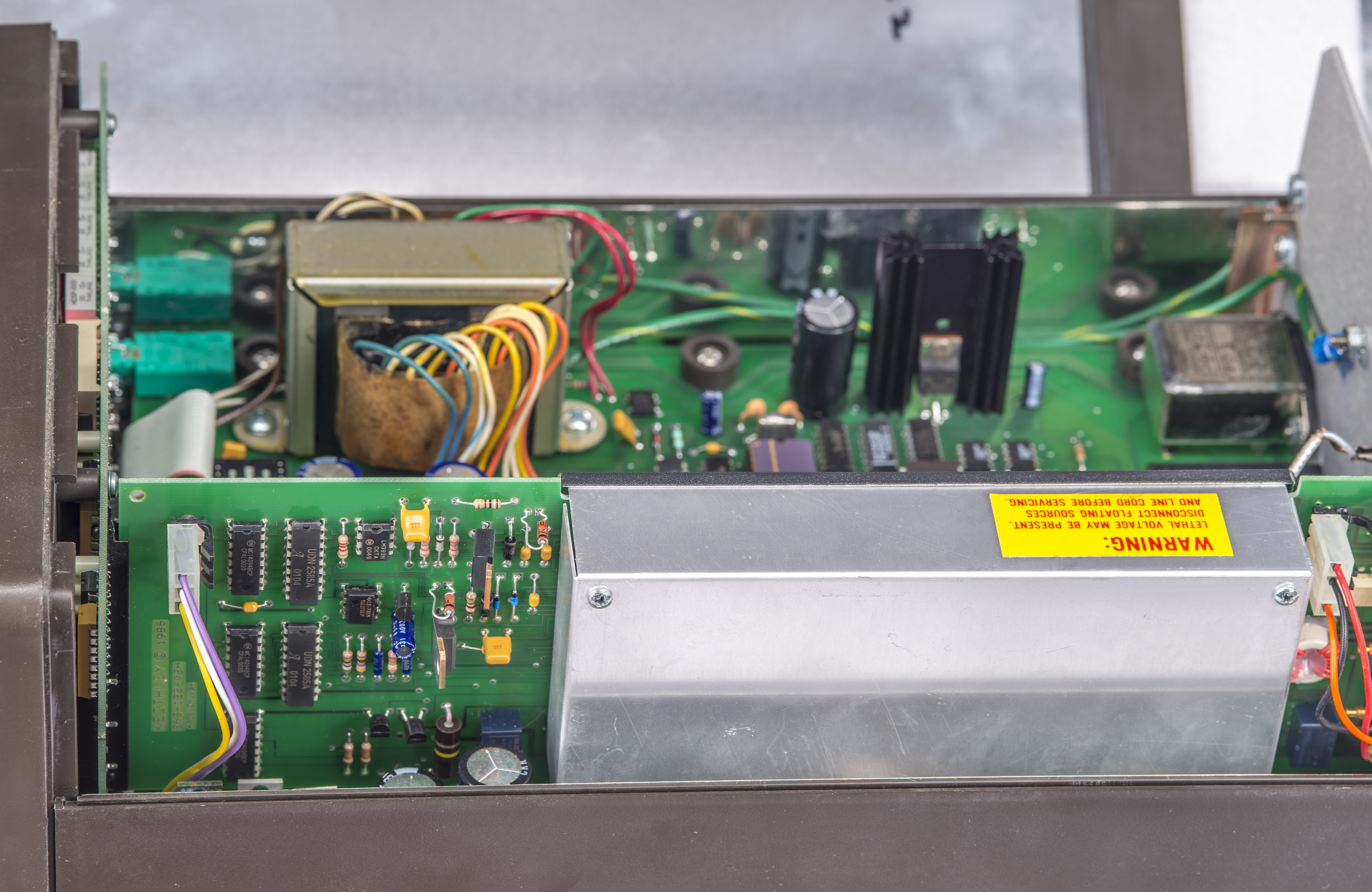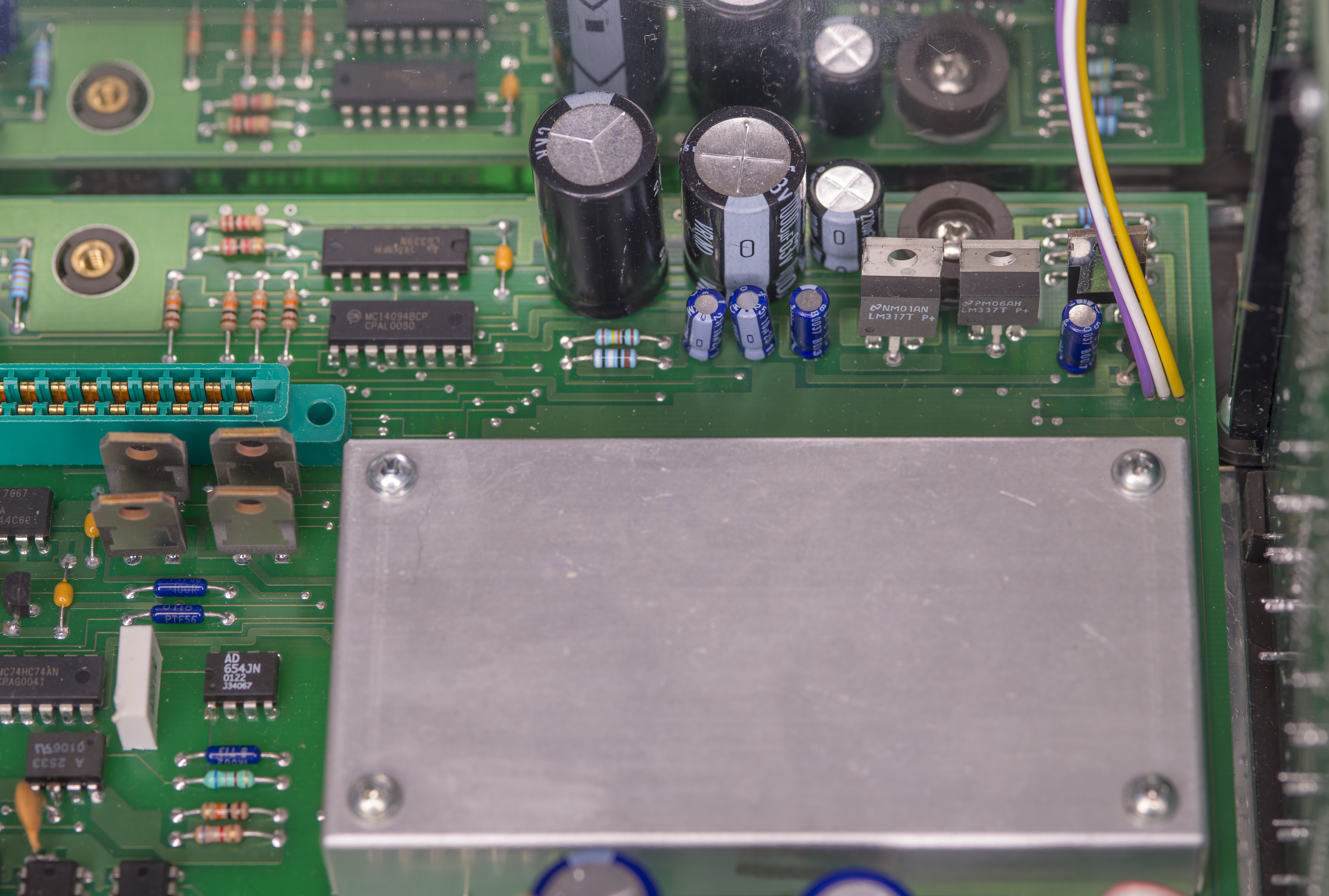 After careful removal of both shields we can see all the sensitive low-current stuff.