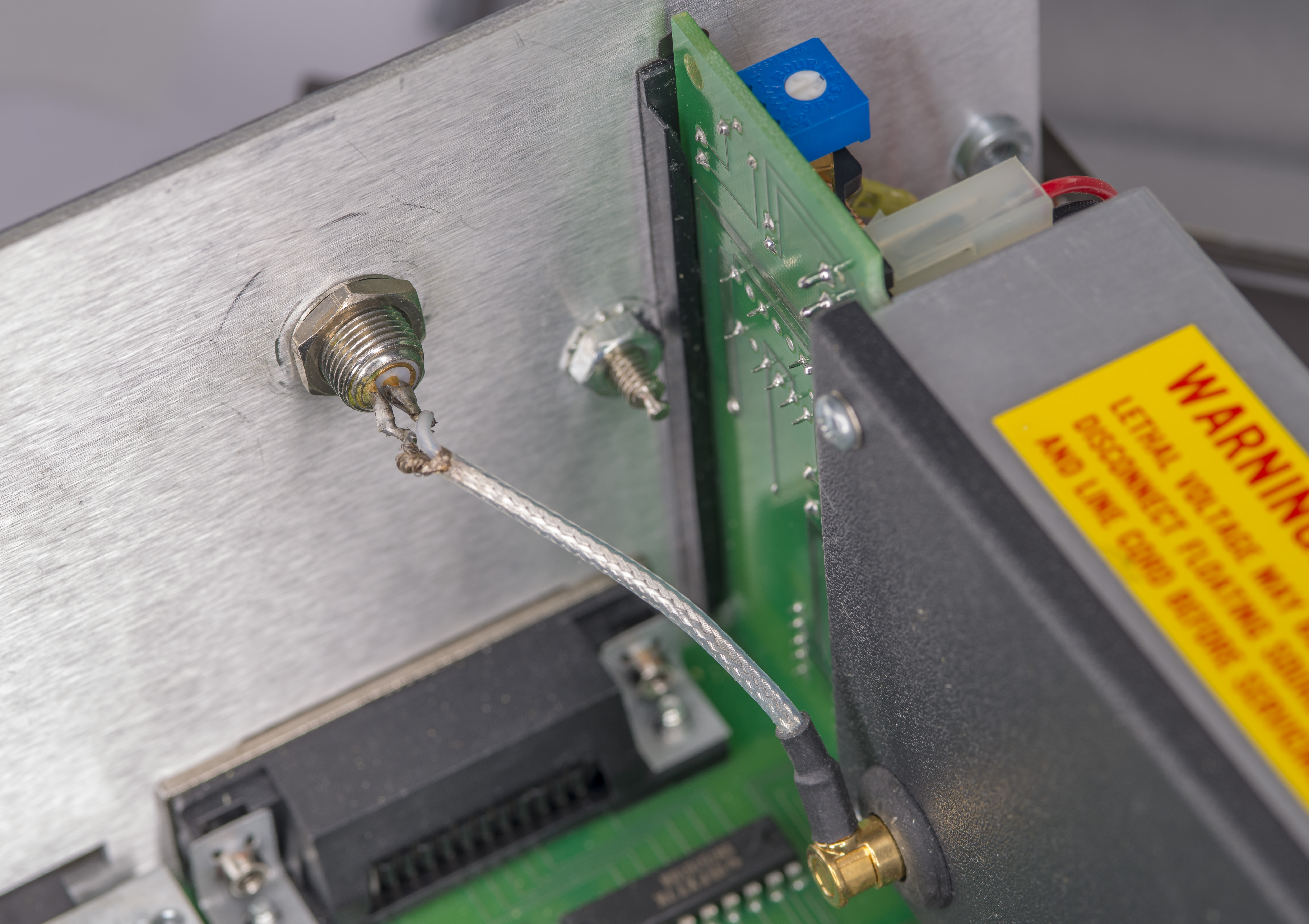 Internally triax port is routed to a short coaxial cable with SMB connector on the analog board end.
