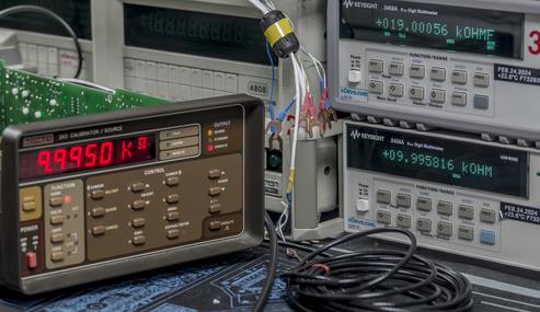 - Source fixed resistances from 1 kΩ to 100 GΩ in decade steps, with temperature compensation for values over 1 GΩ.