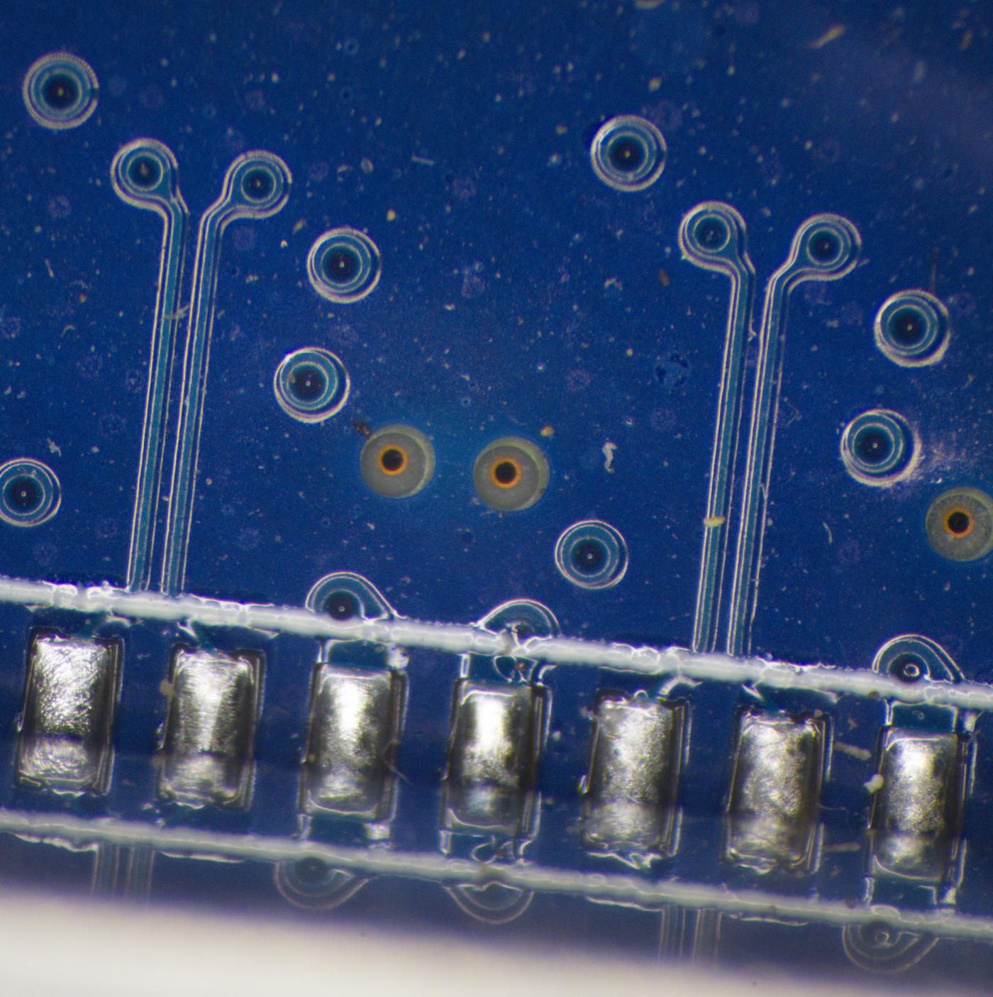 On this PCB backdrills are implemented from both top and bottom sides. Sadly there are no layer identification markers on PCB, so I don’t know how many layers this 1.6mm board has. From my past experience I’d expect there are at least 10 or 12 signal/power plane layers.