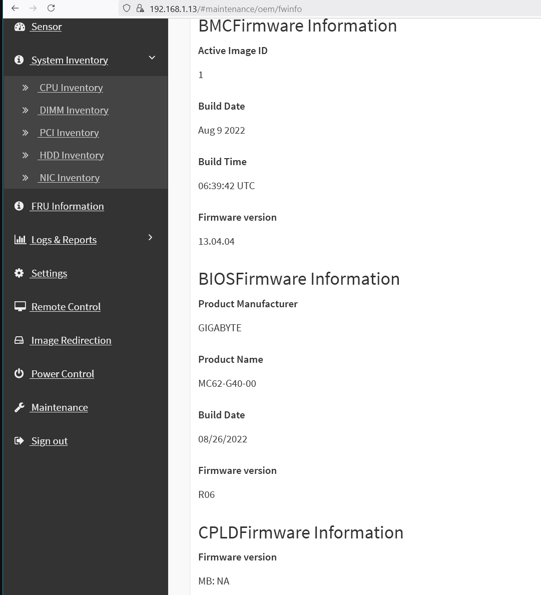 Gigabyte MC62-G40 Firmware for BMC, AST2600 v13.06.18