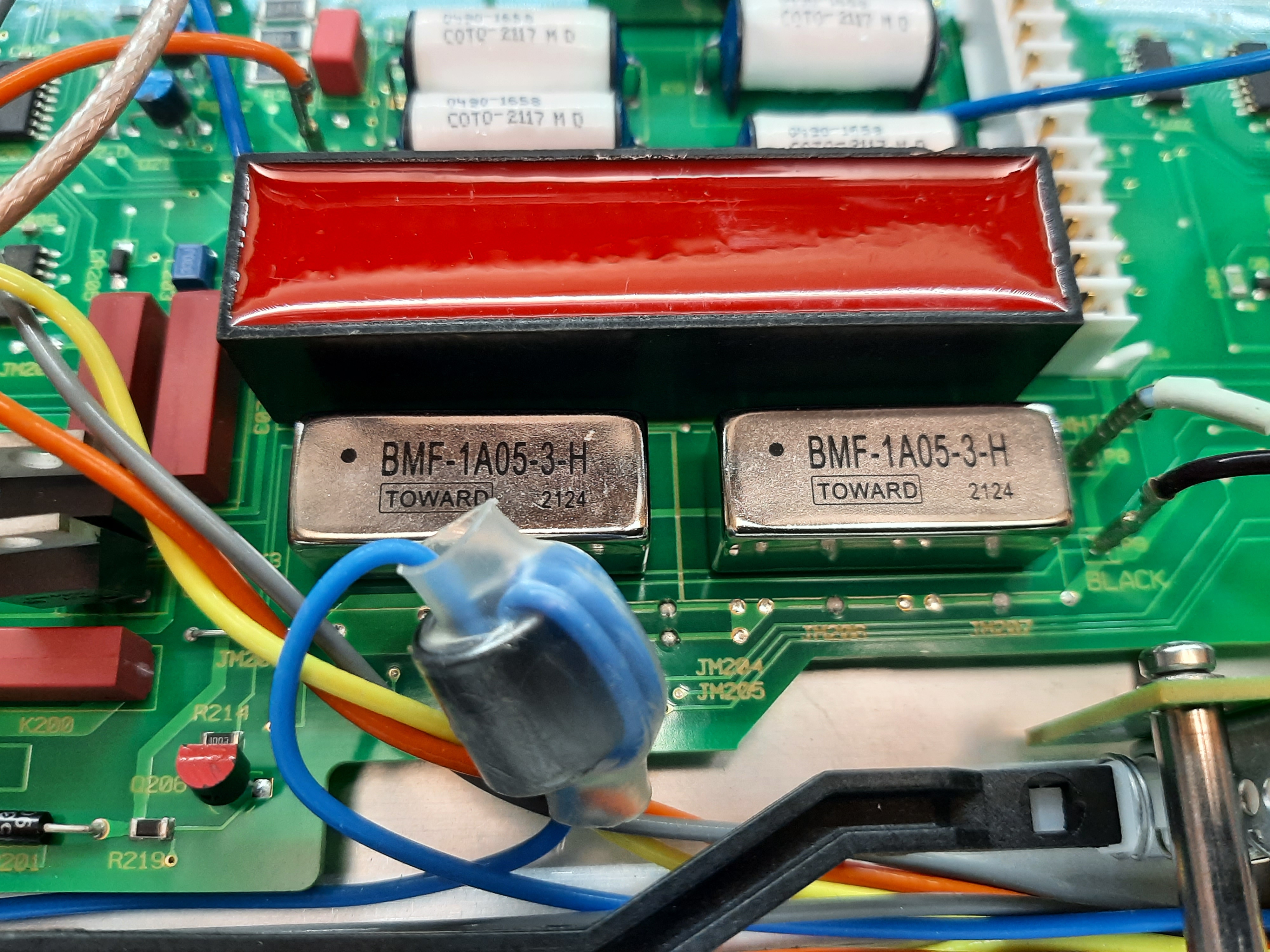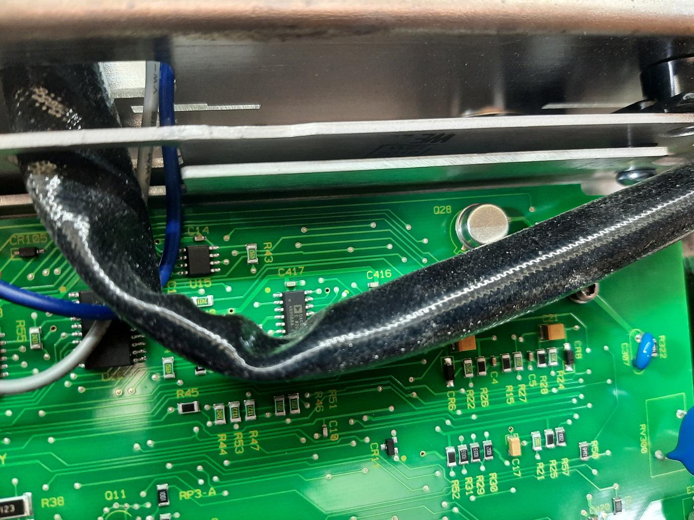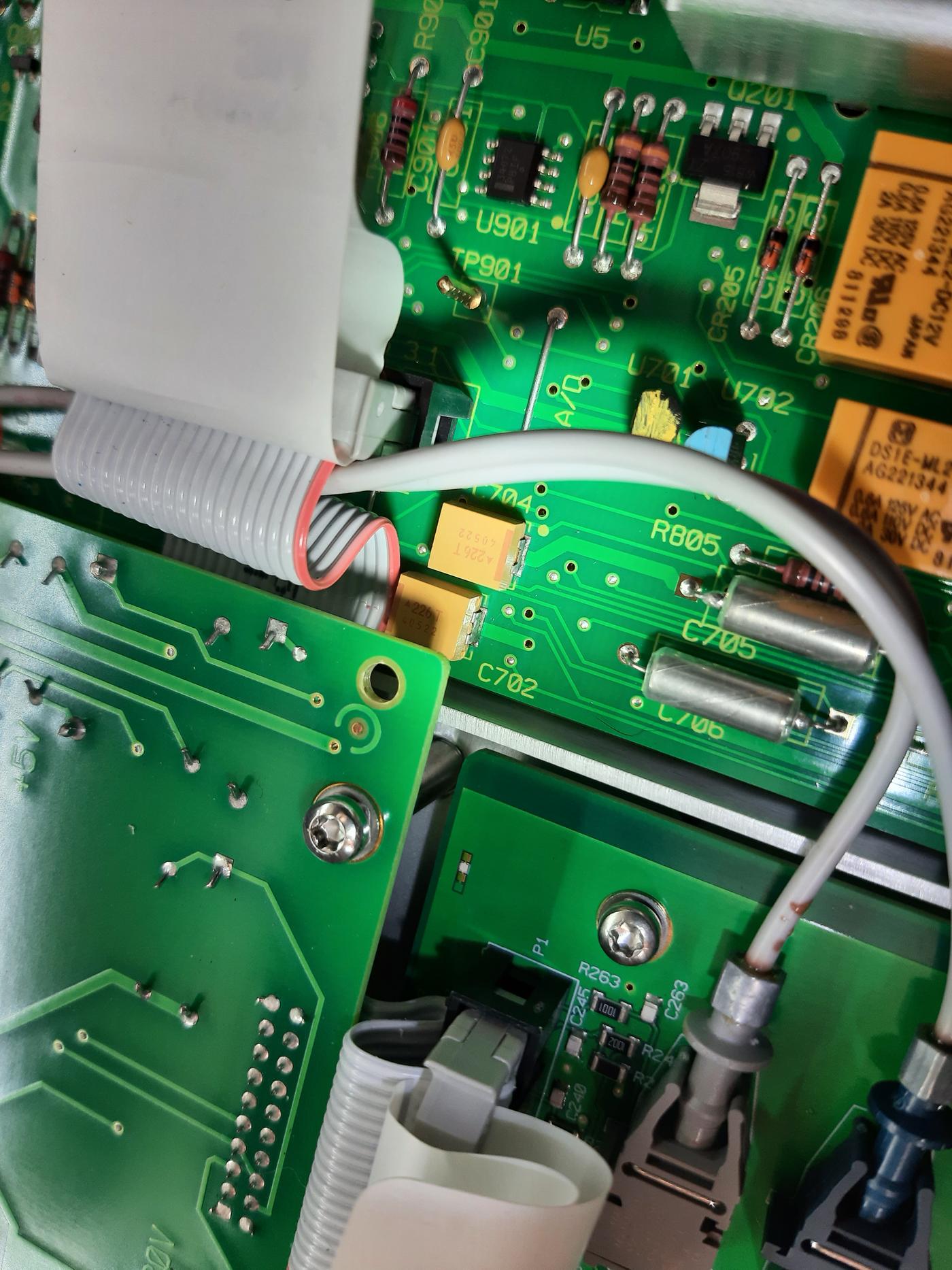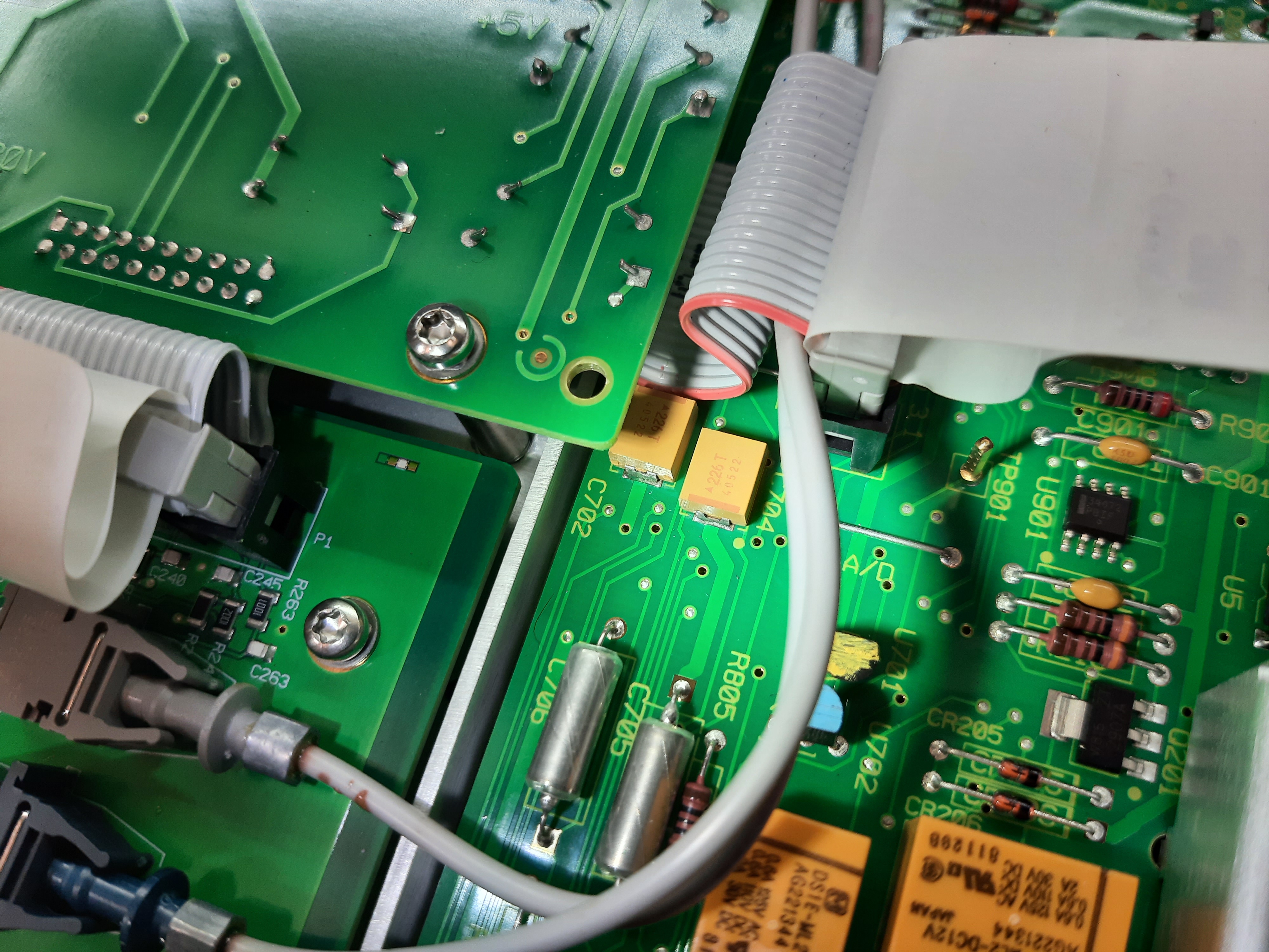 New 3458A has now flat ferrite choke on ribbon cable going to the front panel PCBA.