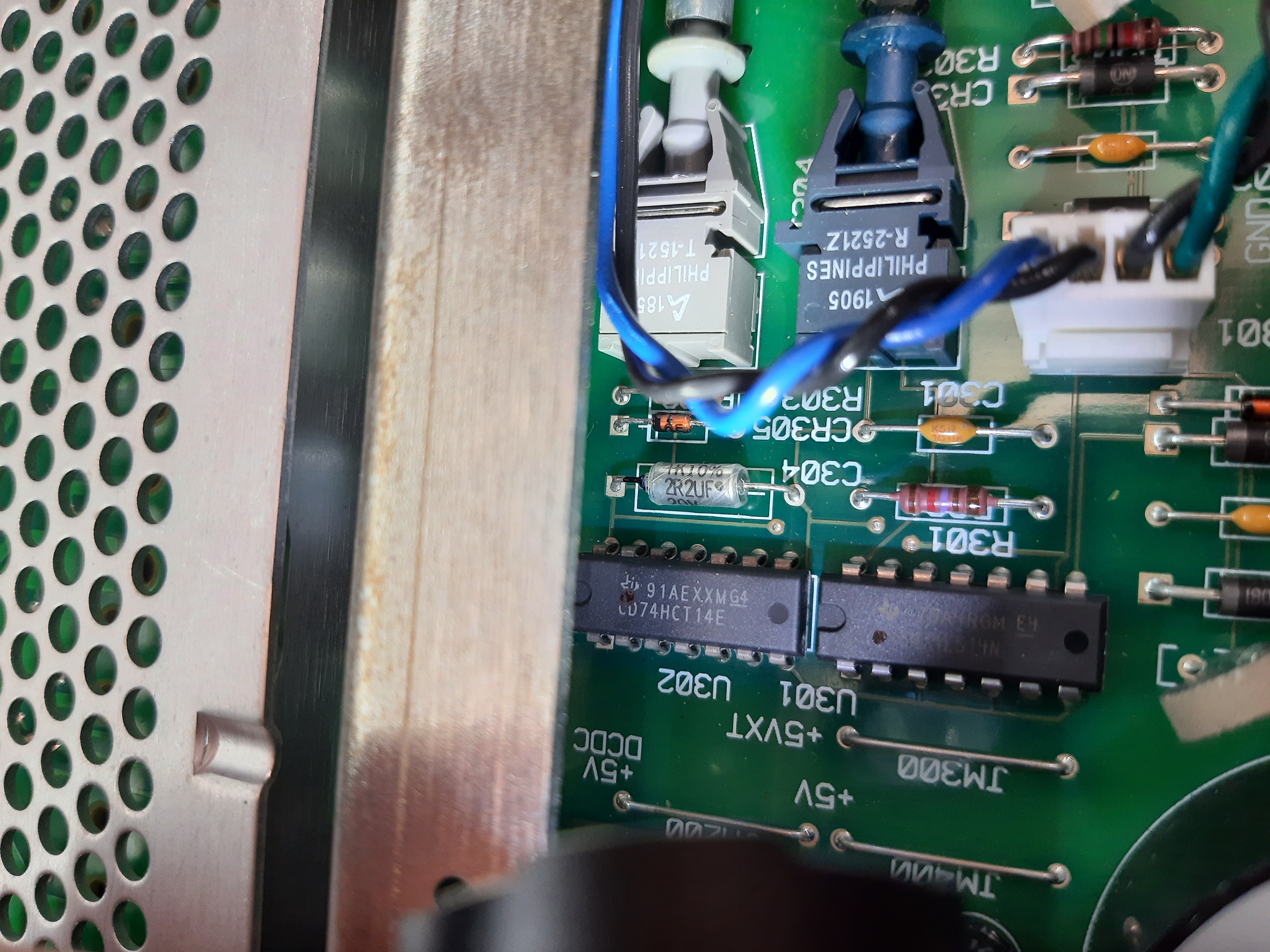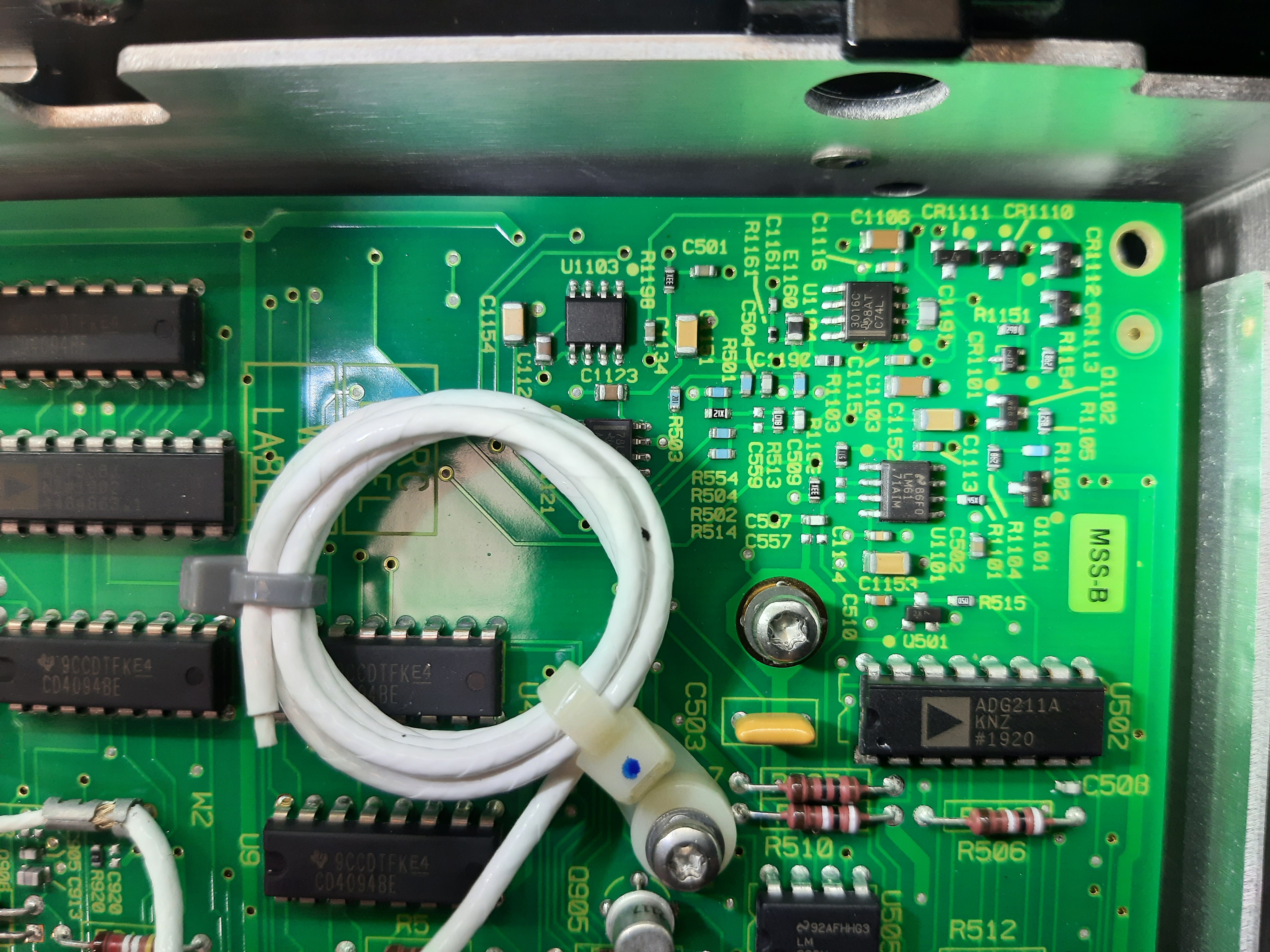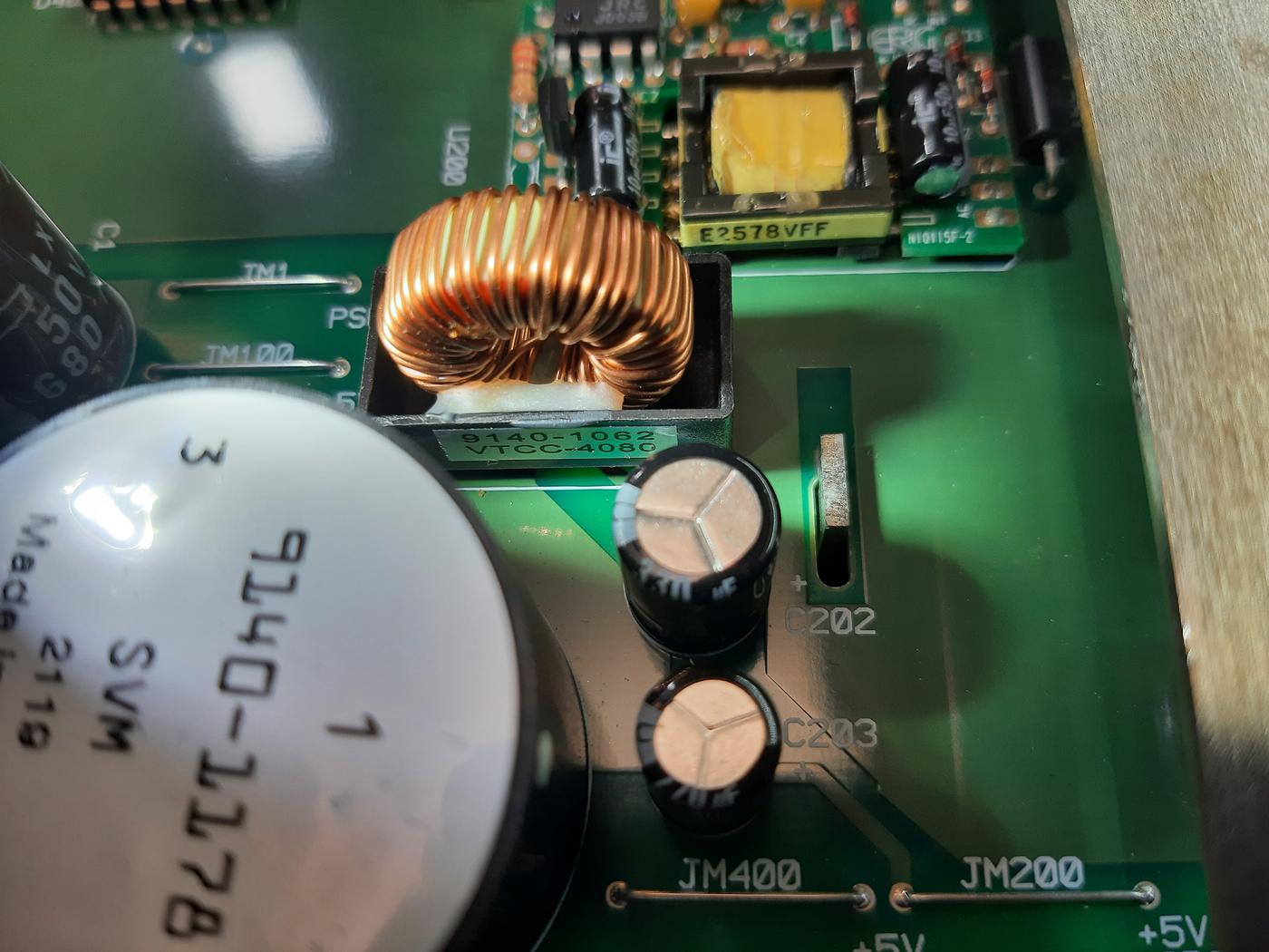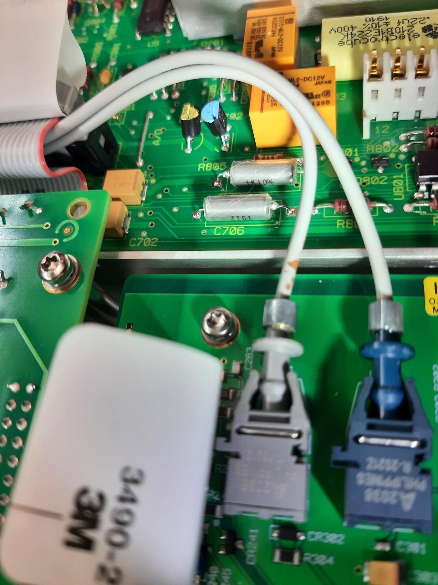 New 3458A has now flat ferrite choke on ribbon cable going to the front panel PCBA.