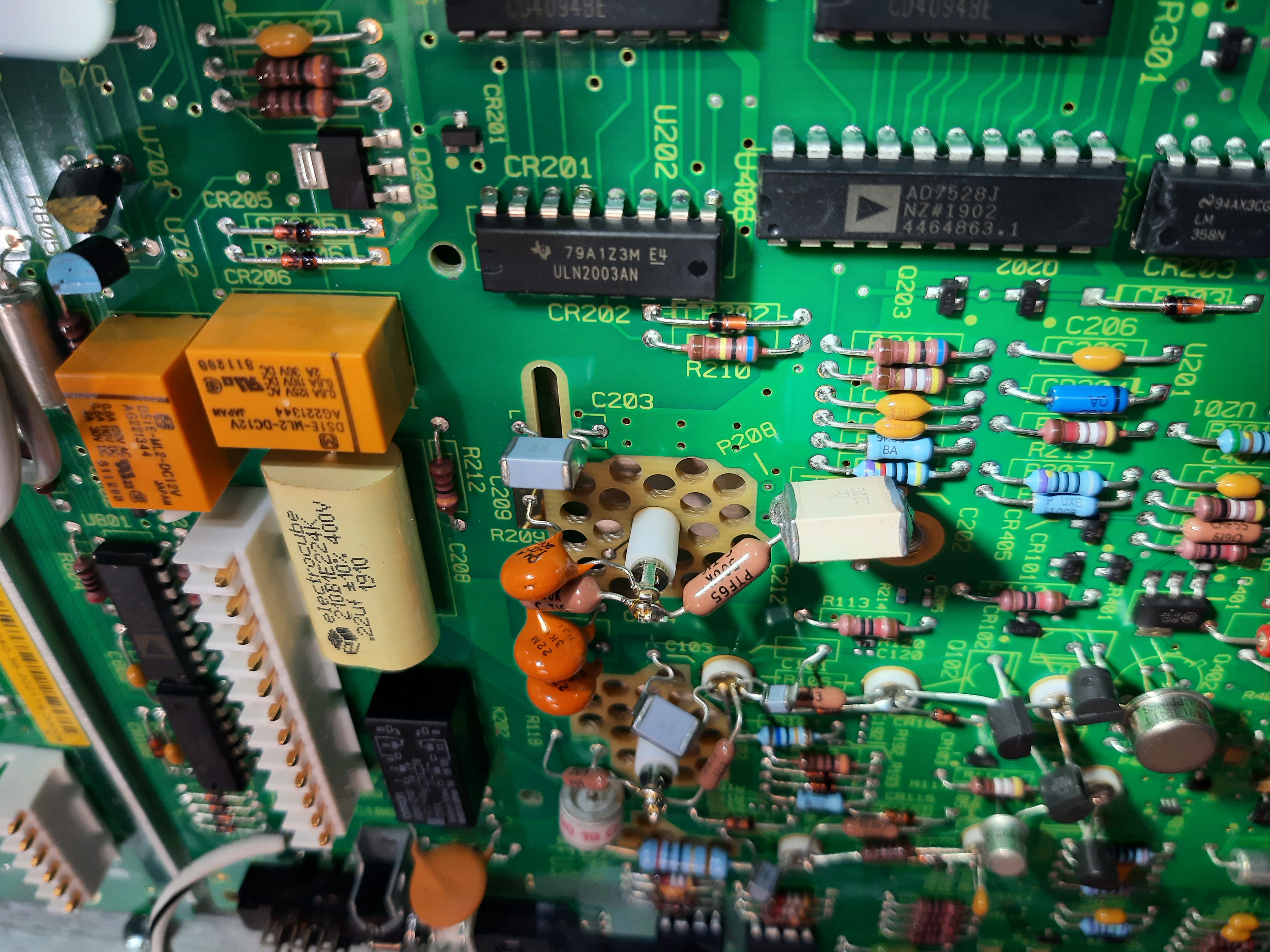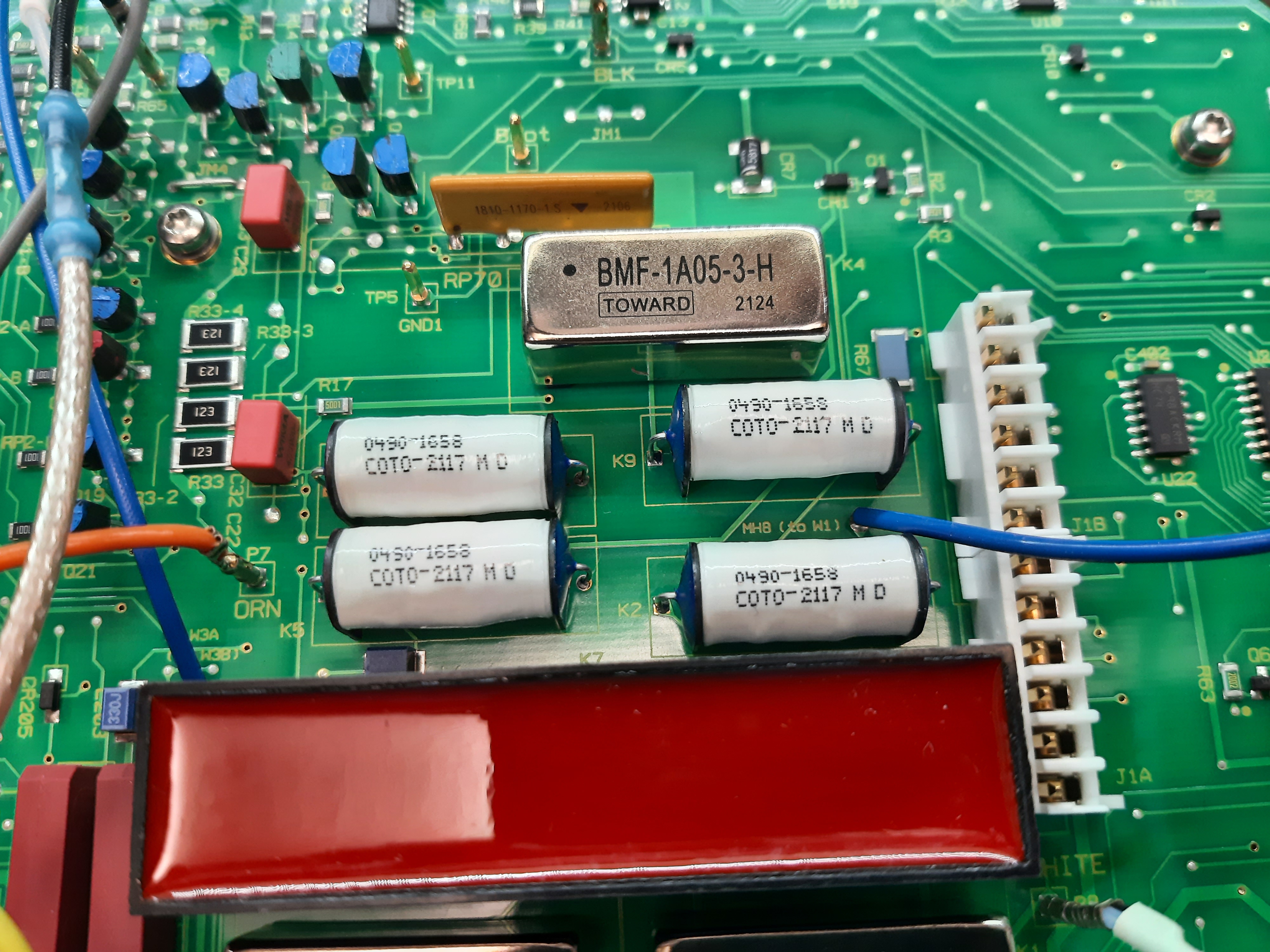 Teflon capacitor made out of coil of coax wire is still in place, just like HP guru’s designed it.