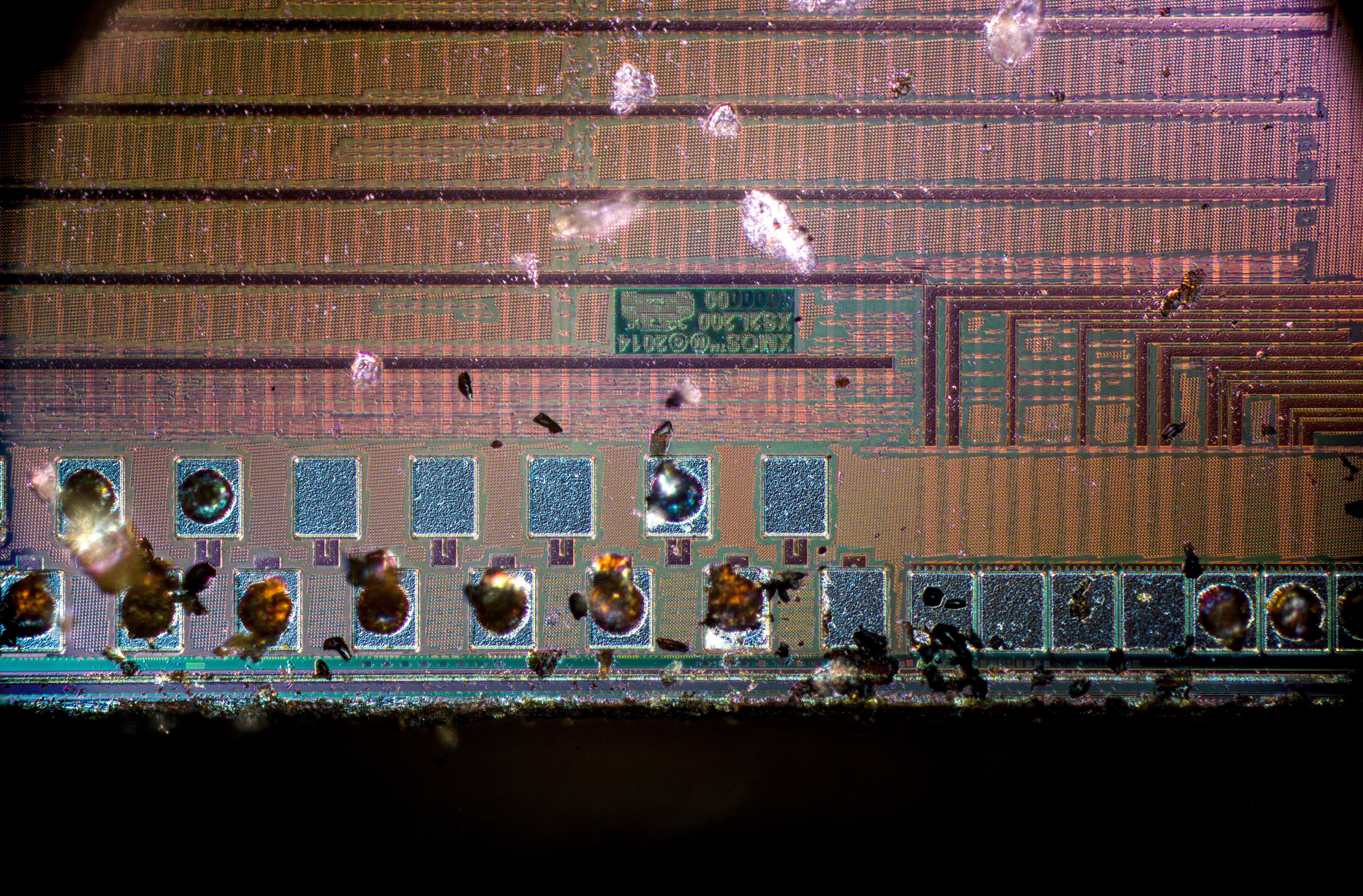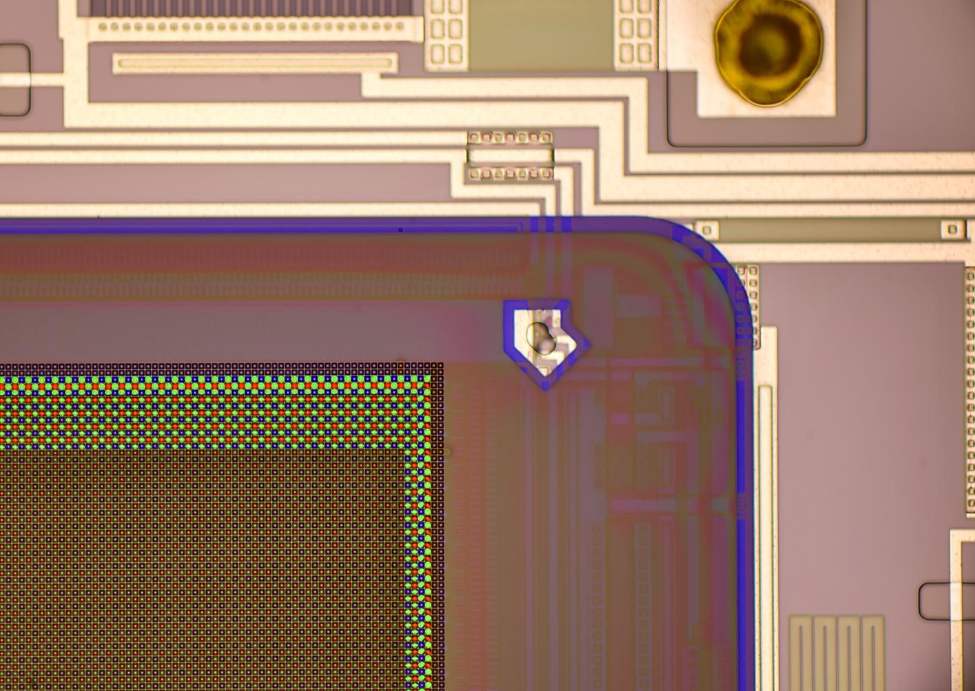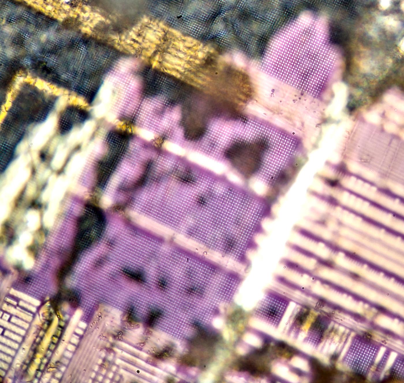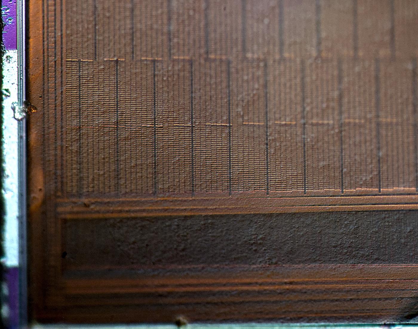 x500 magnification image shows some squares on inner layers of silicon.
