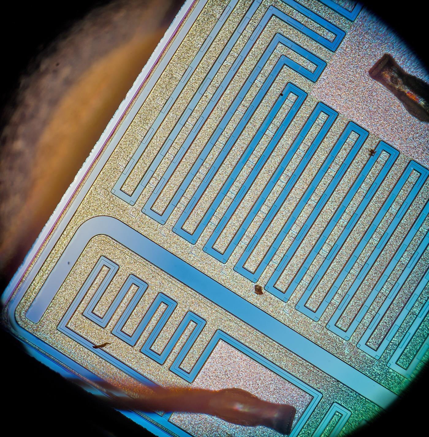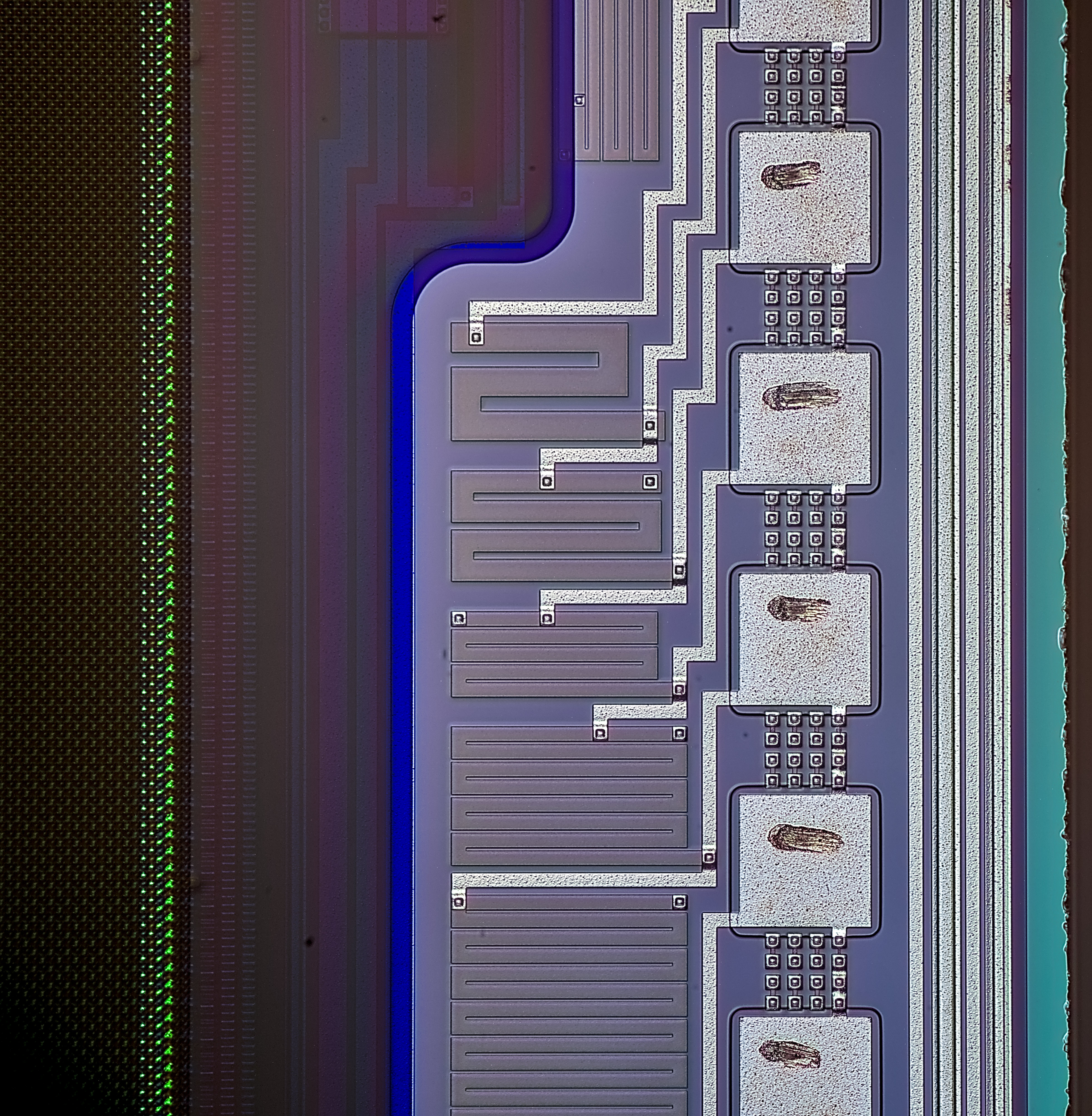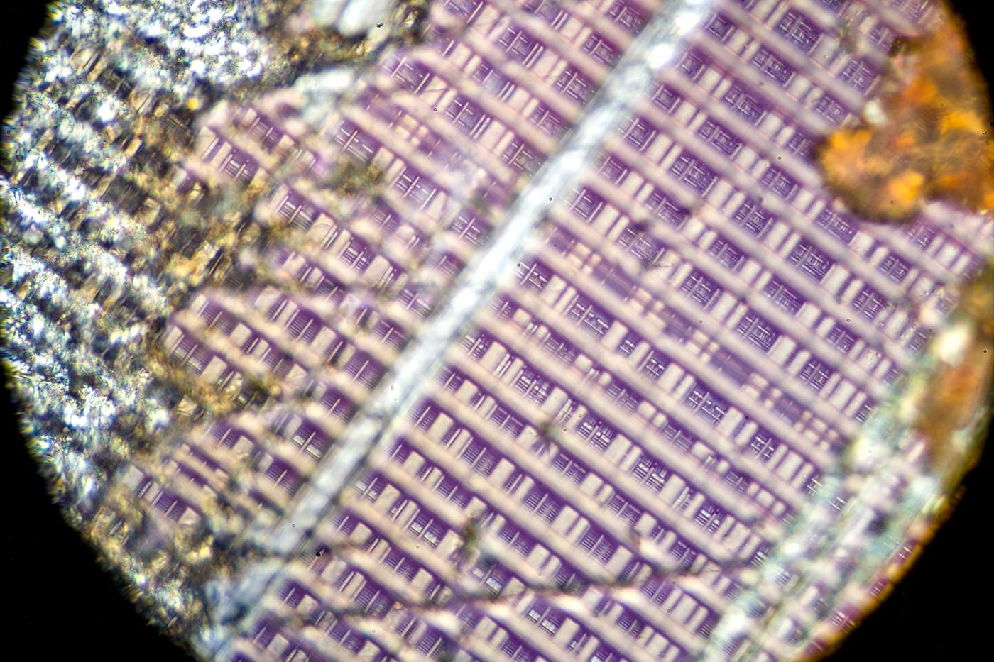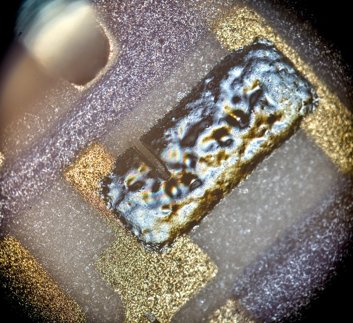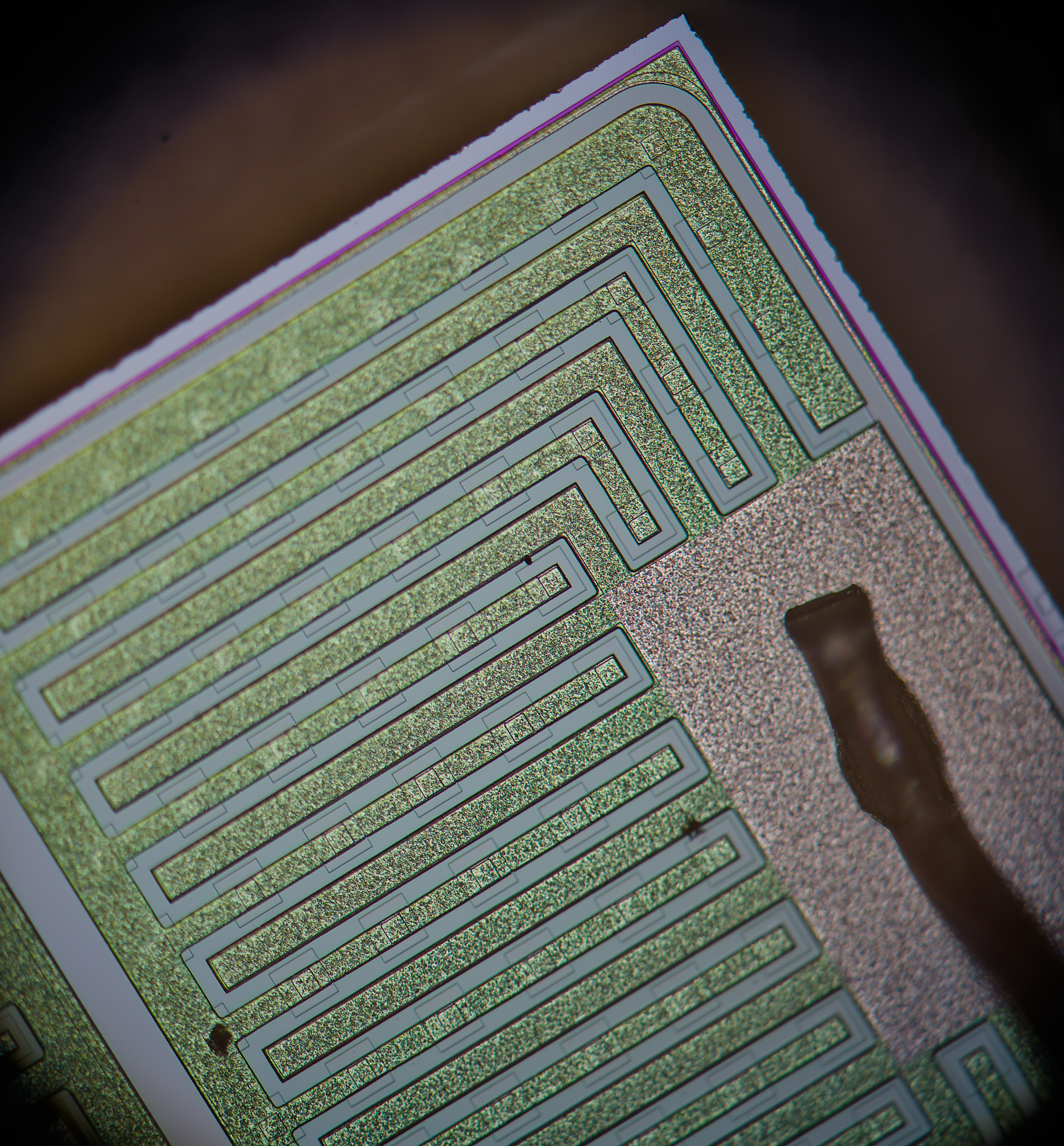 x500 magnification image shows some squares on inner layers of silicon.