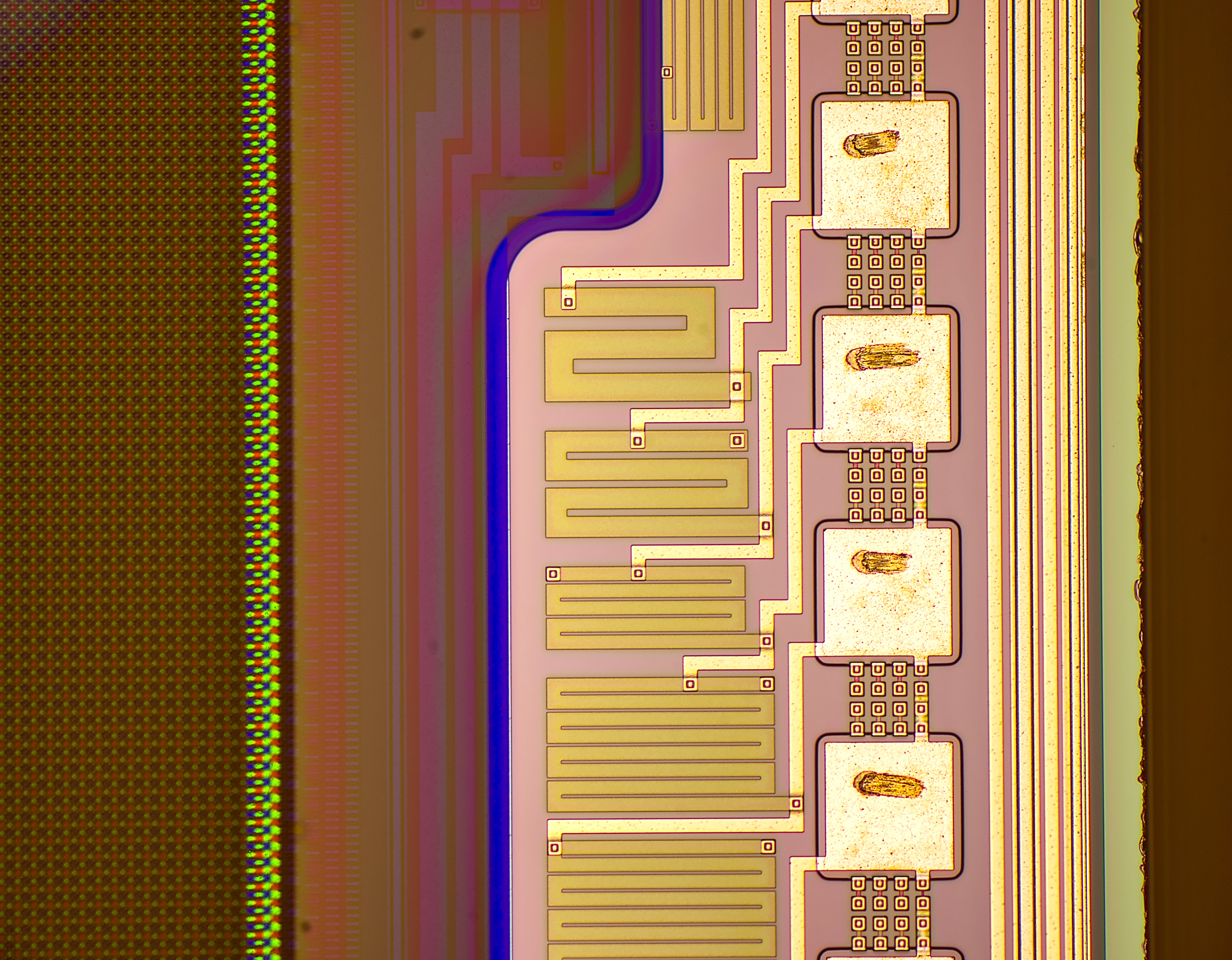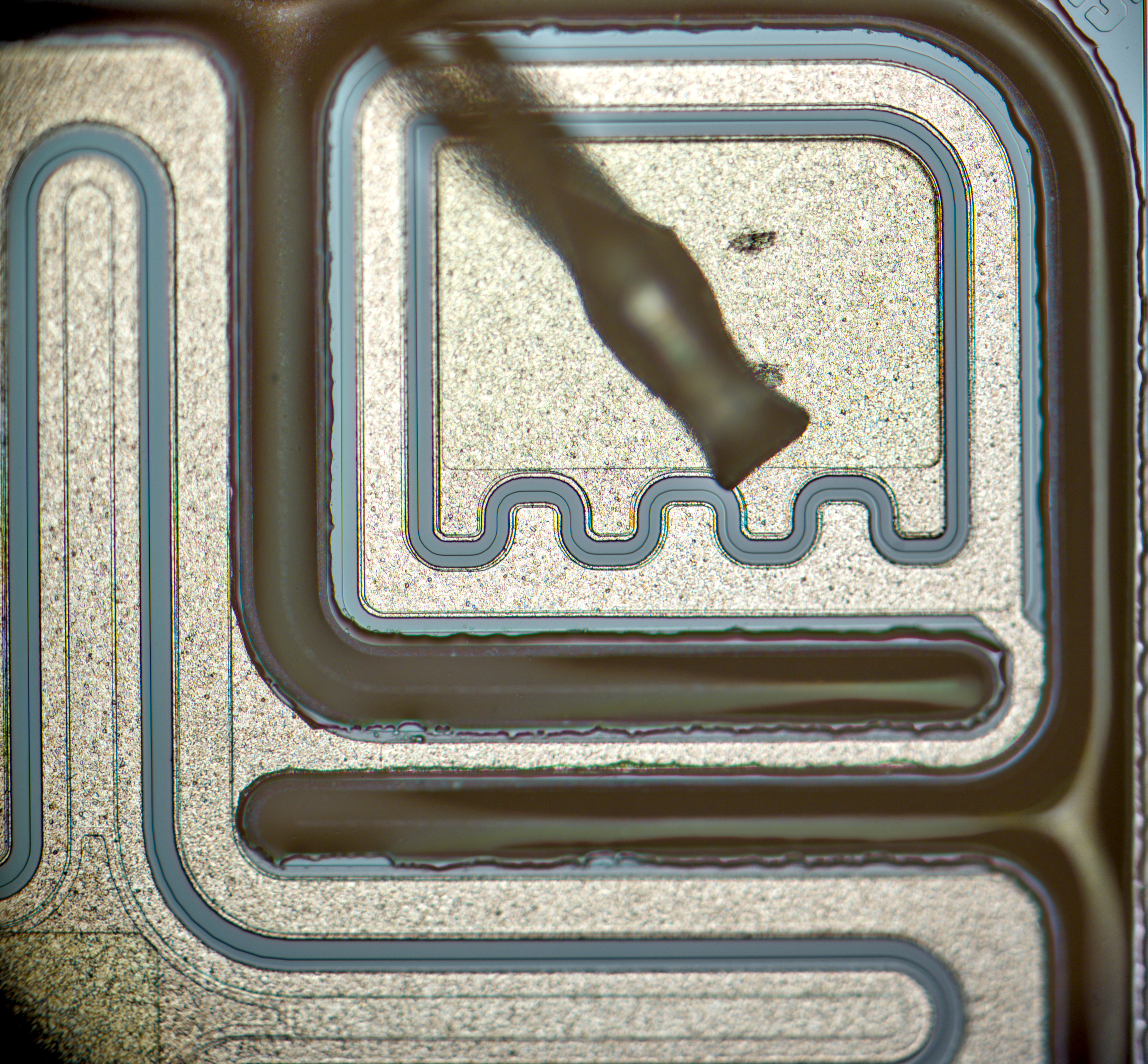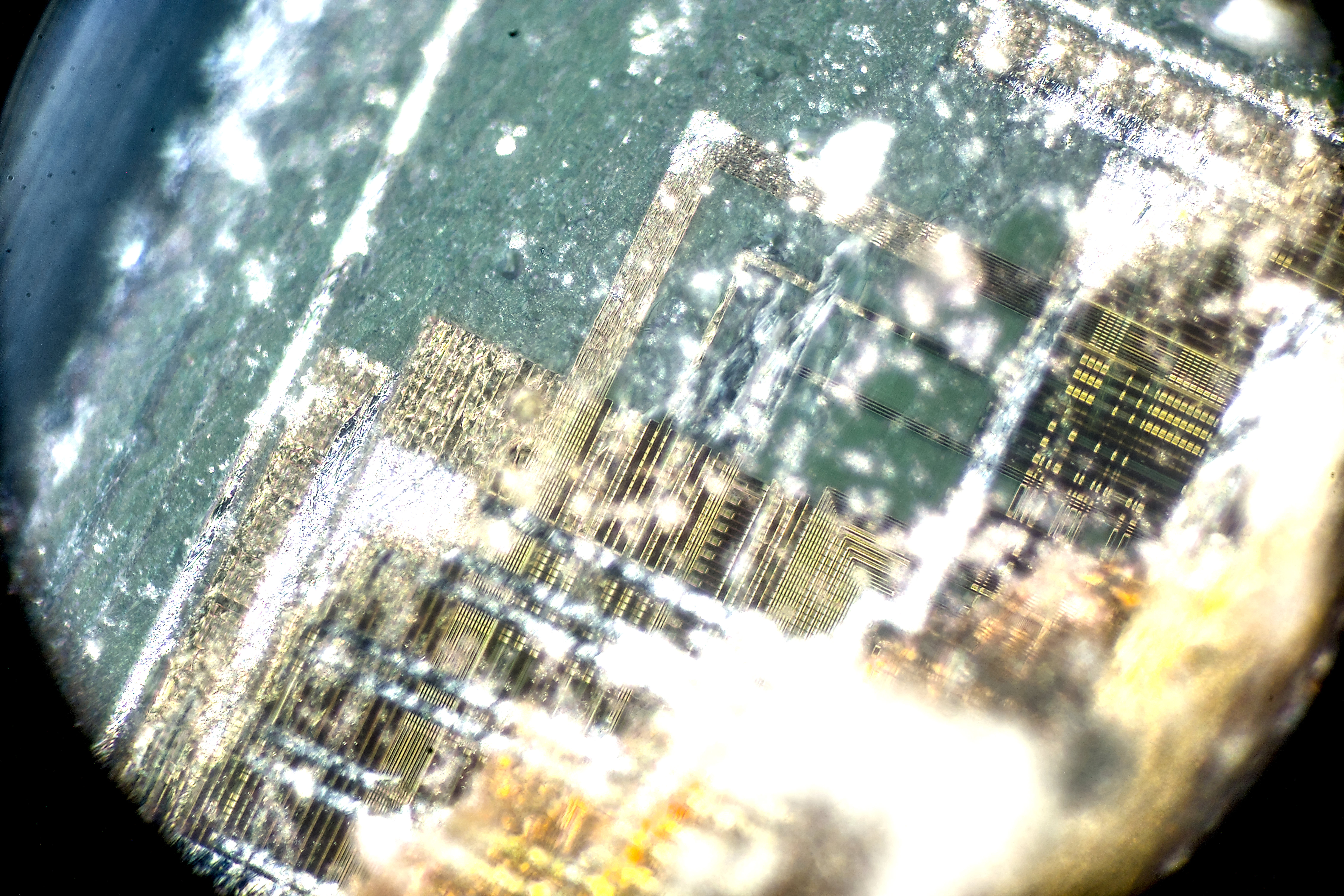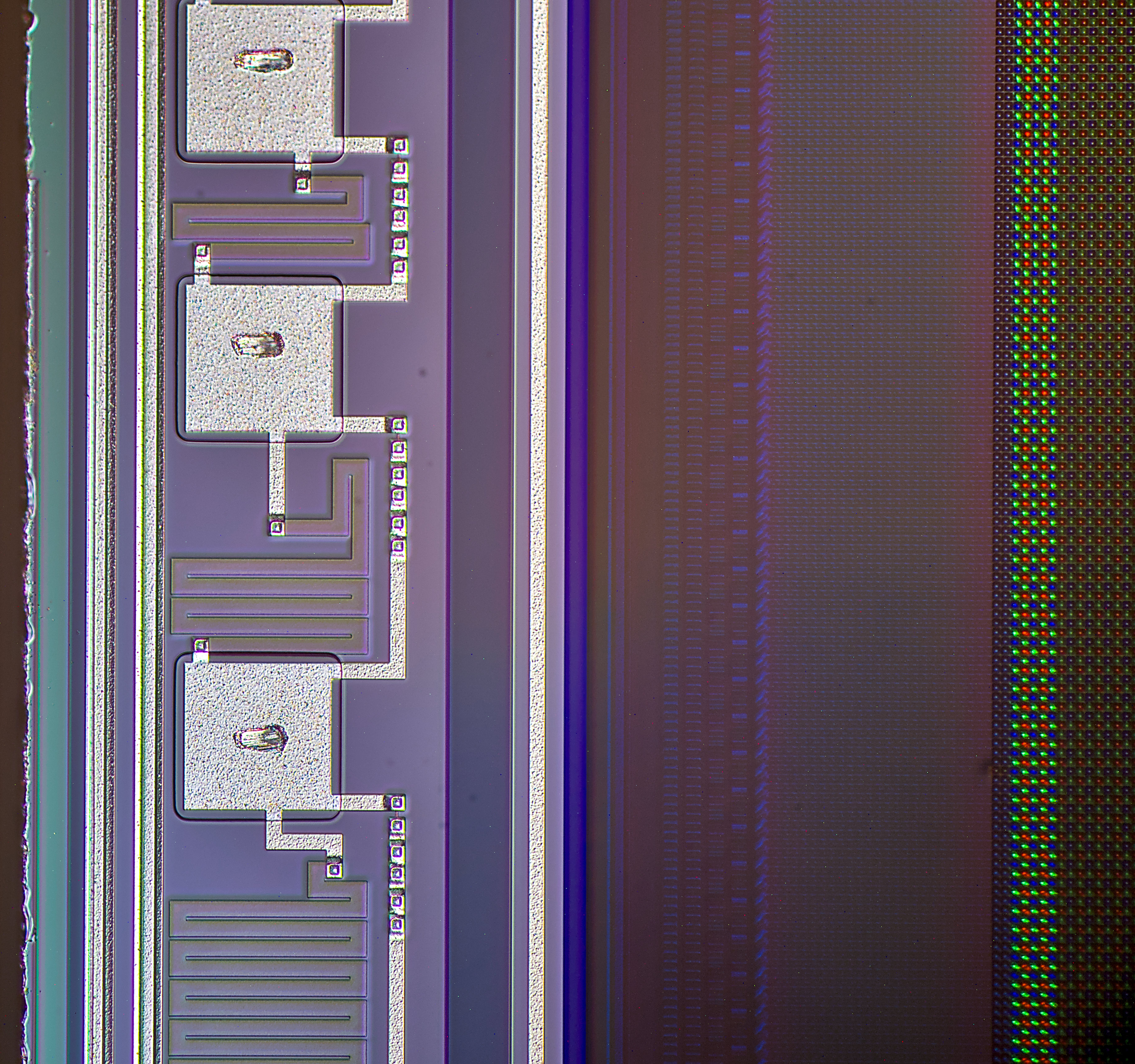 x500 magnification image shows some squares on inner layers of silicon.
