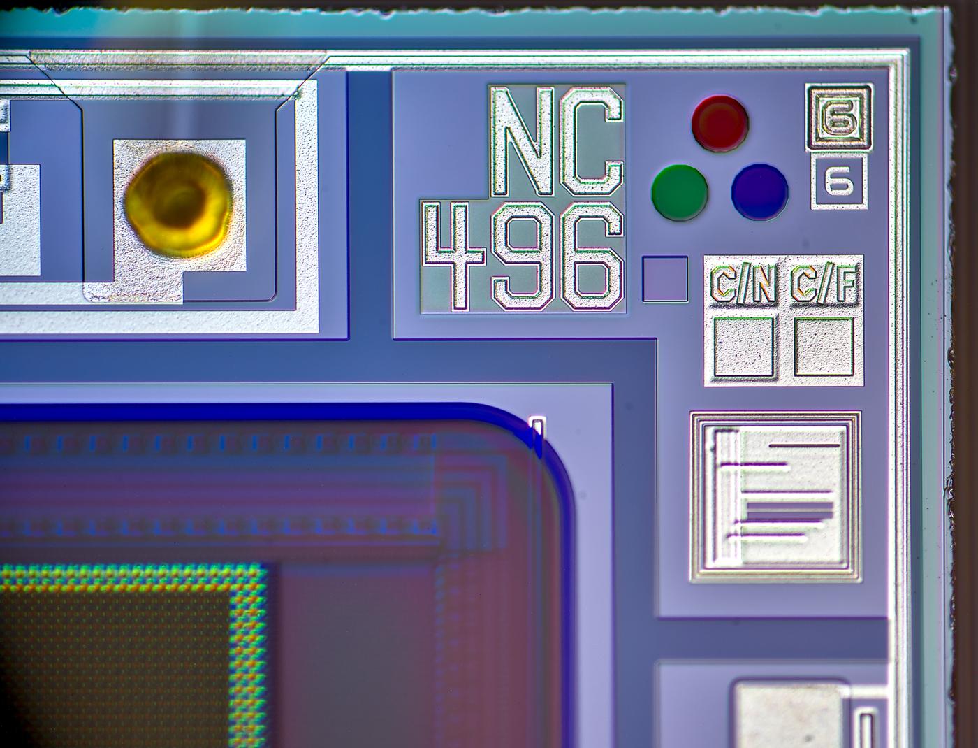 Marked as NC496 this is compact low resolution sensor. It’s much easier to photograph thanks to easy to remove glass window on ceramic package.